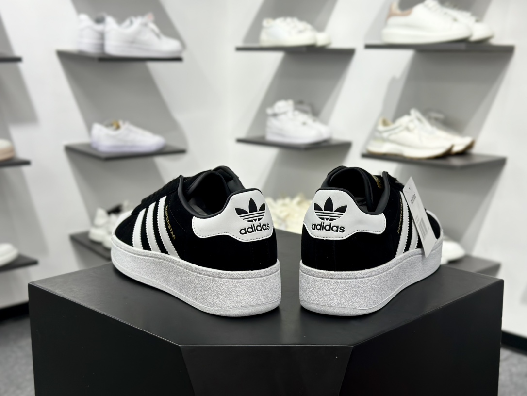 未经允许不得转载:Chinese UA Cheap High Quatity Brand Clothes Bags handbags Sneakers wholesale wholesaler seller from China Factory suppliers Fashion Clothing Shoes best Quality Beautiful Price » 三叶草Adidas Originals Superstar XLG 贝壳头系列低帮厚底松糕经板鞋“皮革黑金LOGO” ID4657