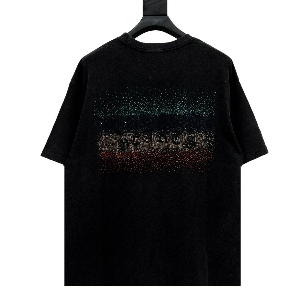 高版本Chrome Hearts克罗心 渐变烫钻梵文洗水做旧短袖