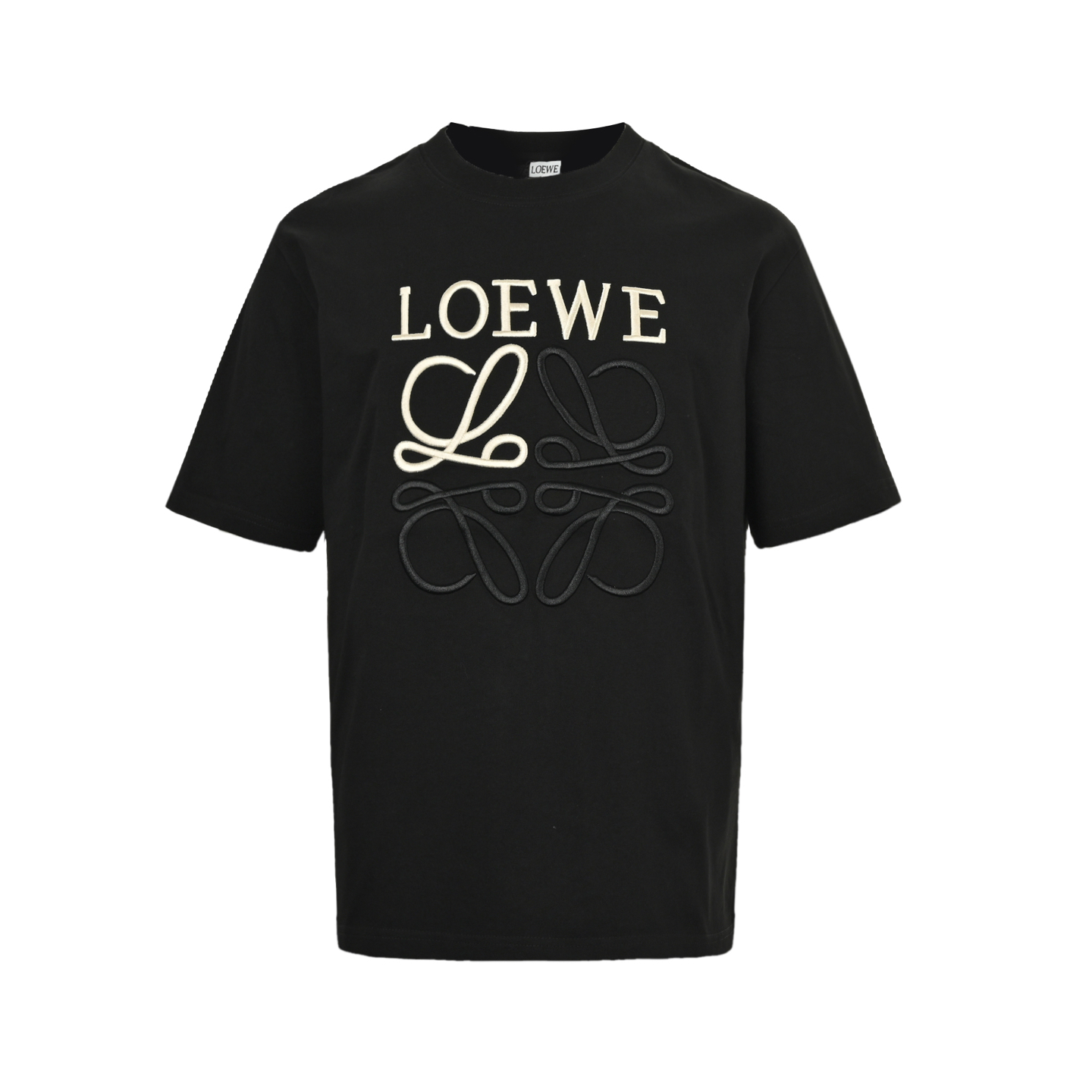 Loewe/罗意威 植绒拼色Logo短袖T恤 黑色 白色