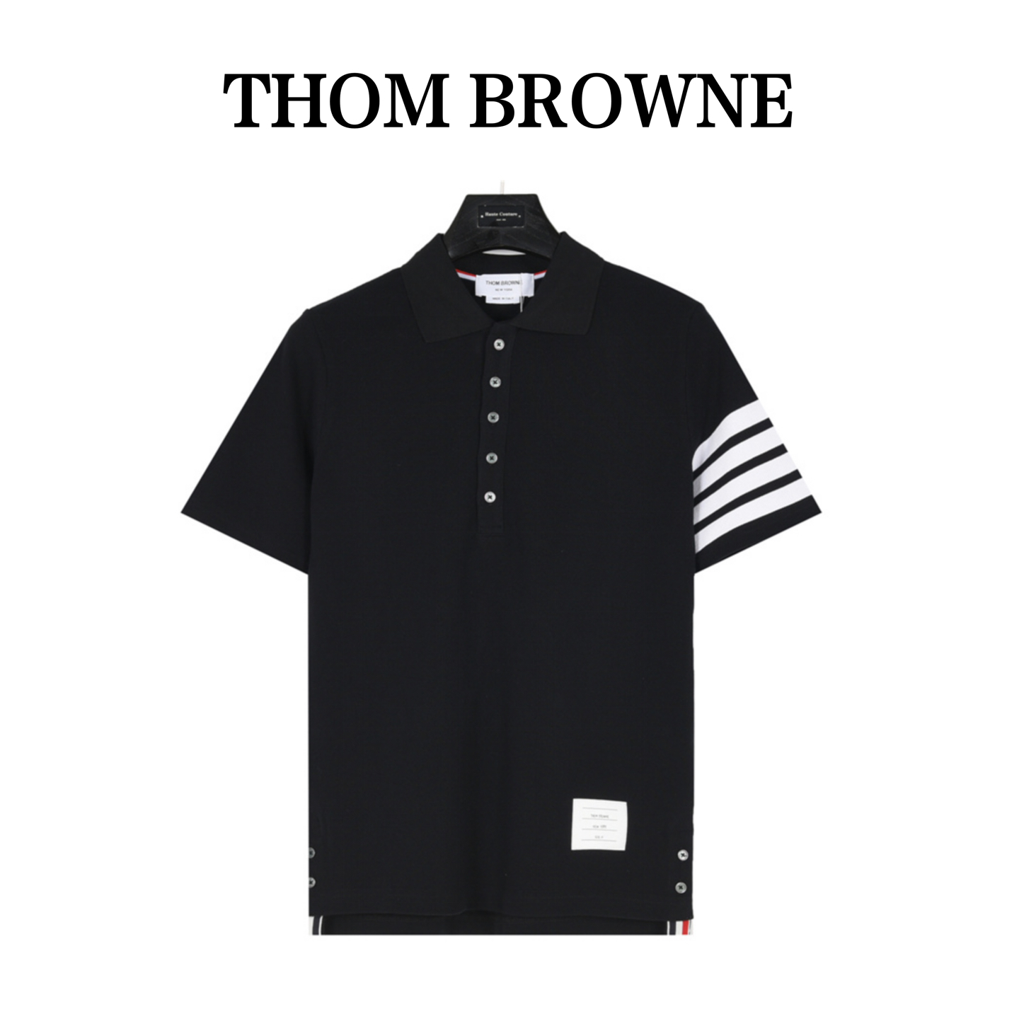 ThomBrowne/汤姆布朗 基础款织带短袖polo衫 黑色 白色 浅灰 藏青