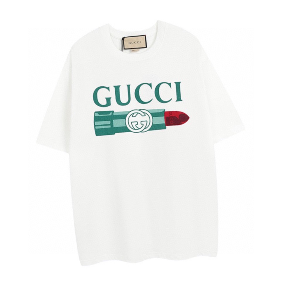 古驰/Gucci 夏季新款 口红印花圆领短袖T恤 白色