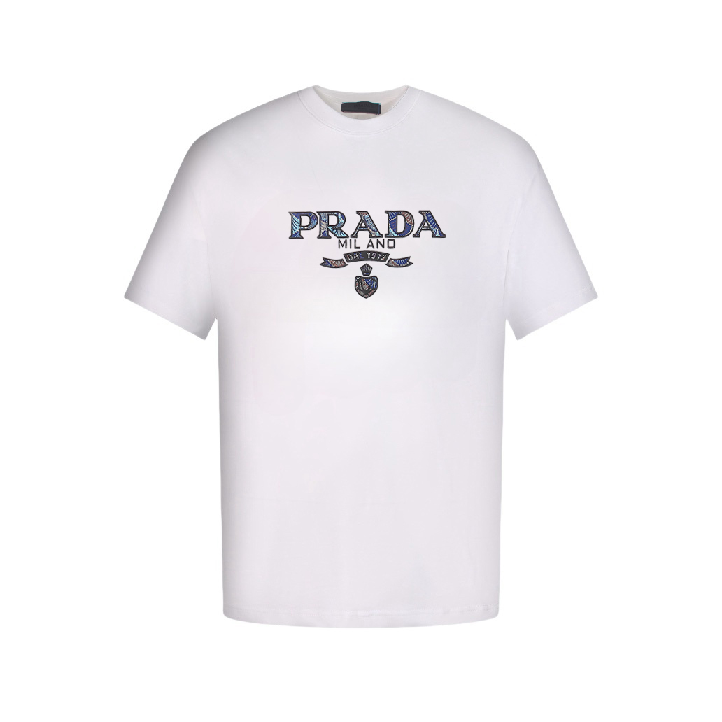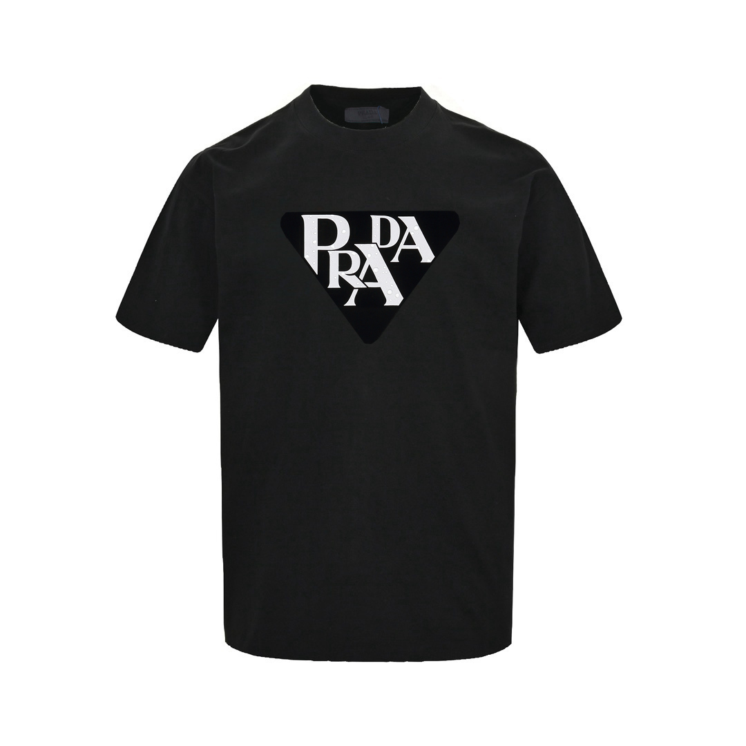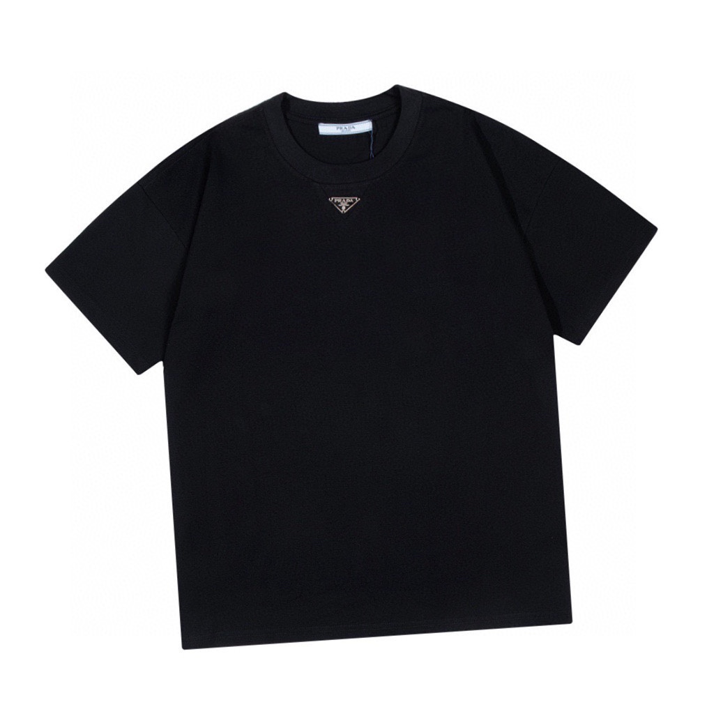 普拉达/Prada 夏季新款 经典三角字母圆领短袖T恤 黑色/白色