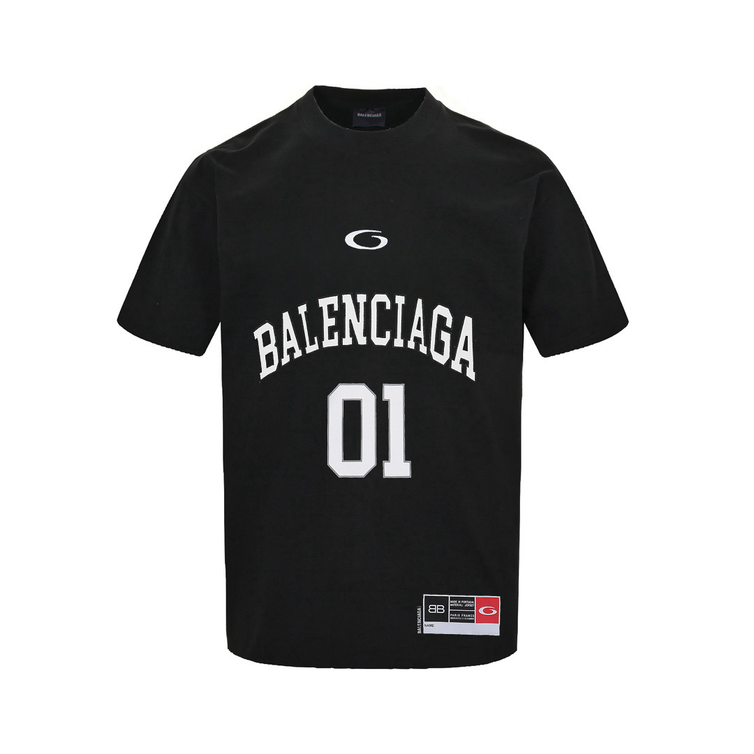 Balenciaga/巴黎世家 BASKETBALL系列01号球衣短袖T恤 黑色 白色