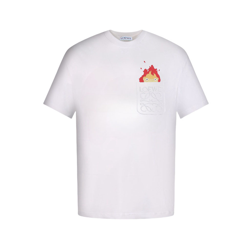 Loewe/罗意威 龙猫限定口袋火焰刺绣短袖T恤 黑色 白色
