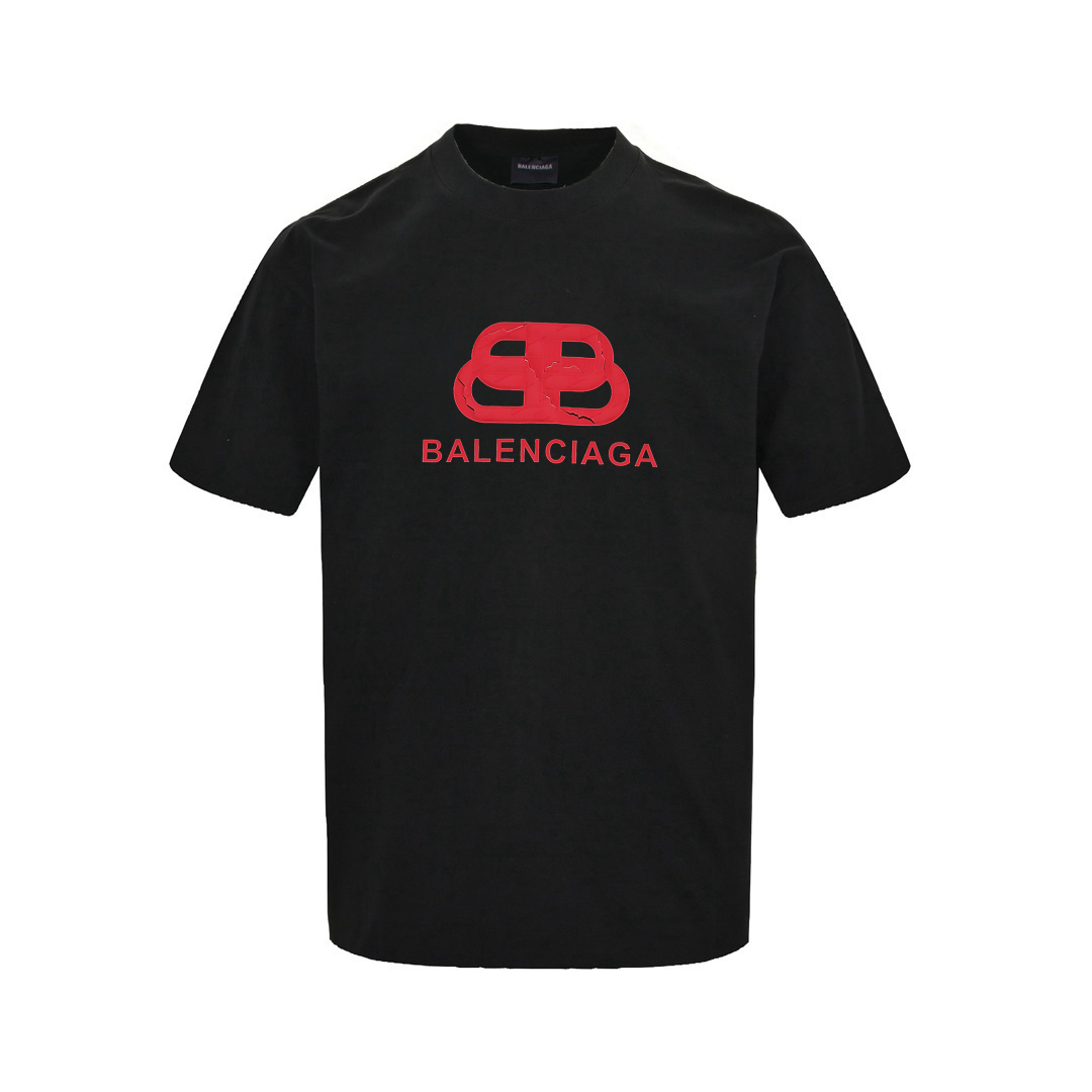 Balenciaga/巴黎世家 25ss 领口字母发泡印花短袖 黑色 白色