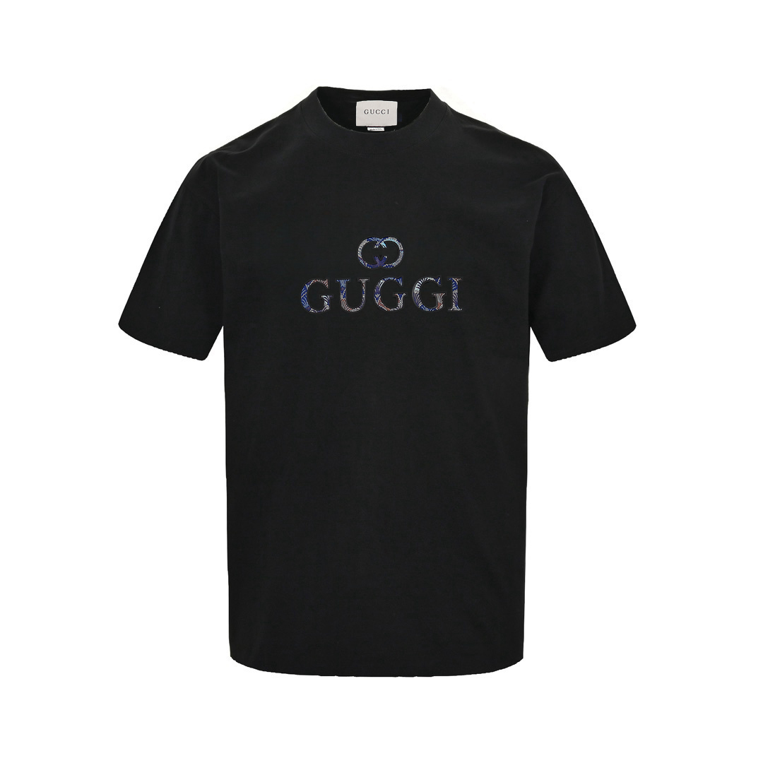 Gucc/古驰 刺绣布及镂空压胶Logo短袖T恤 白色 黑色