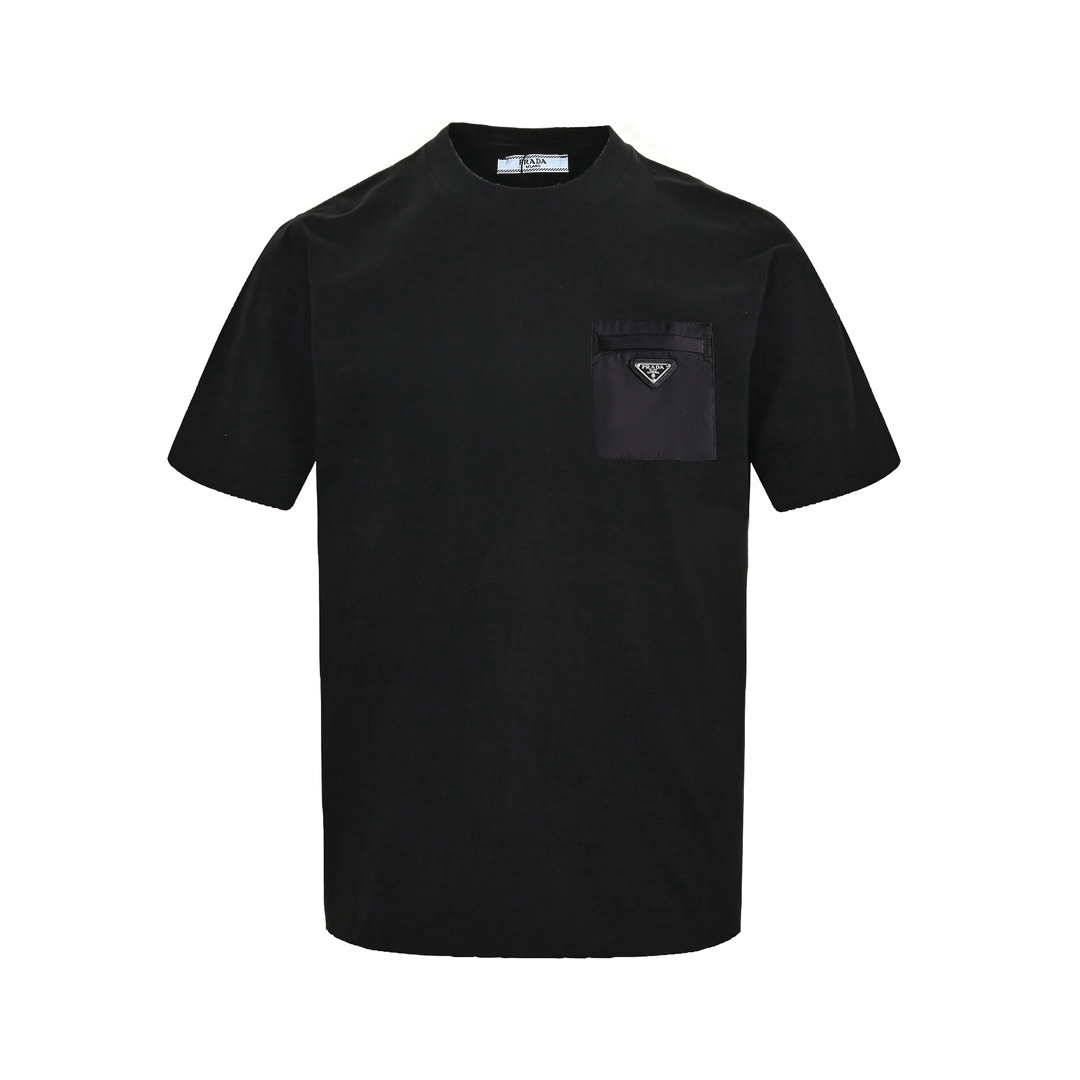 Prada/普拉达 口袋拉链三角徽标短袖T恤 黑色 白色