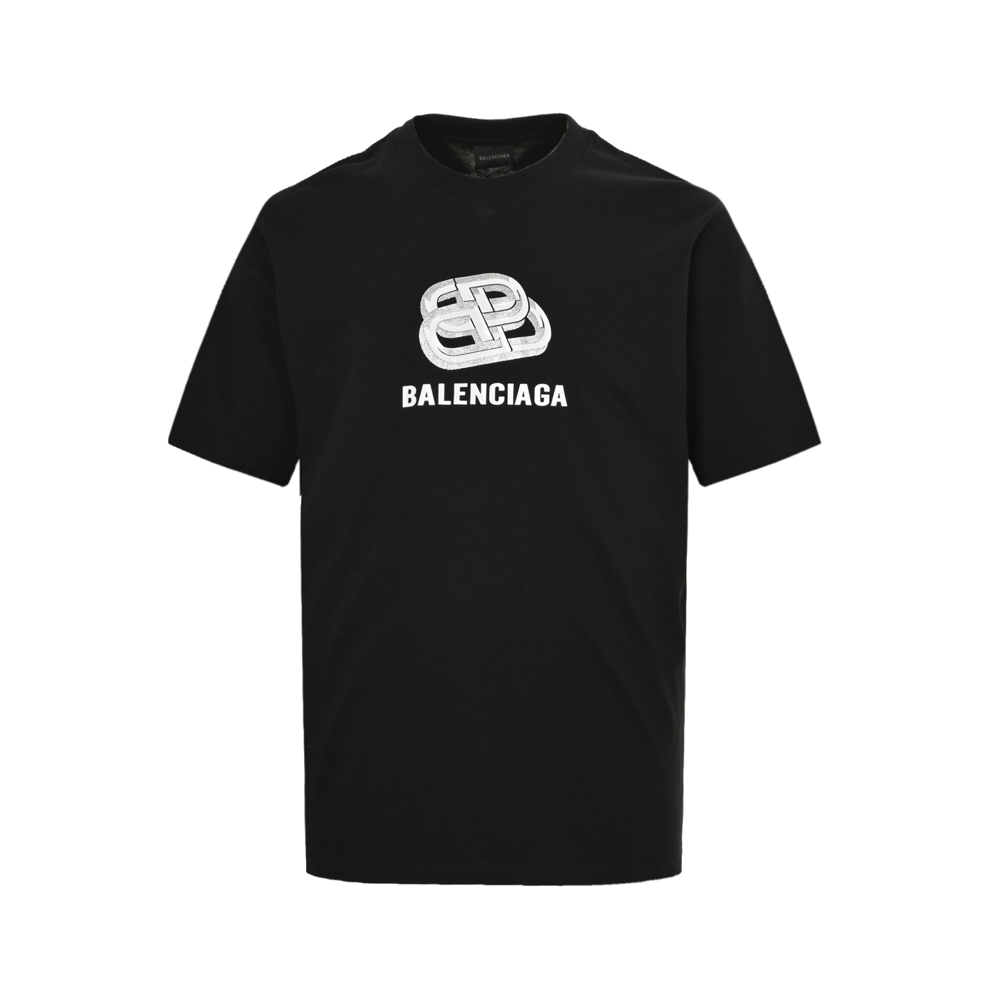Balenciaga/巴黎世家 25ss 锁扣烫银压胶字母短袖 黑色 白色