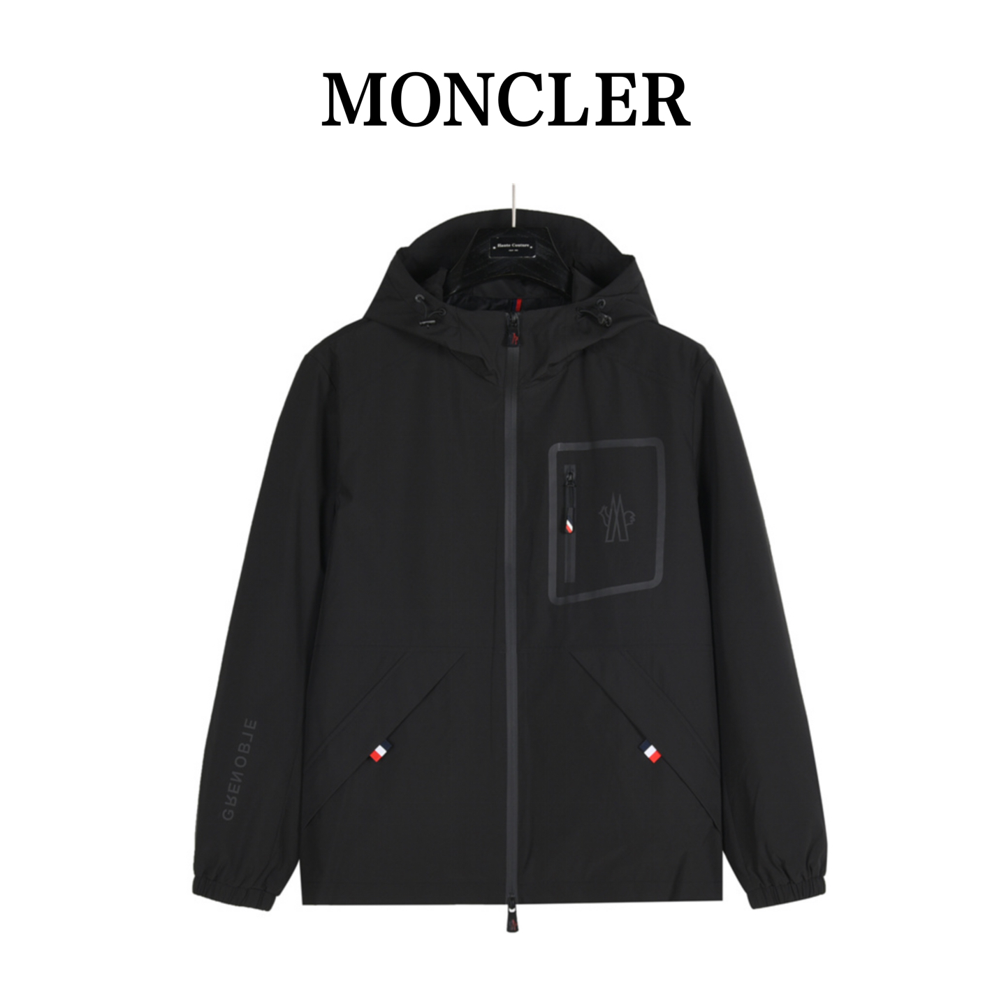 MONCLER/蒙口 胸口口袋拉链连帽外套 黑色 墨绿