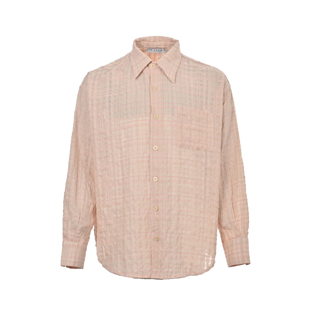OUR LEGACY 褶皱泡泡纱衬衫 休闲宽松廓形格纹长袖外套 贝粉