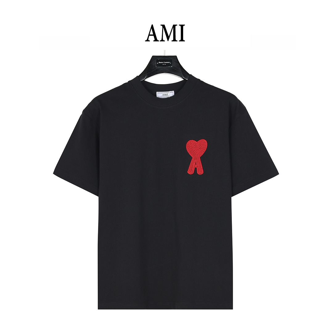 Ami 25ss 立体编织爱心刺绣短袖T恤白色 黑色