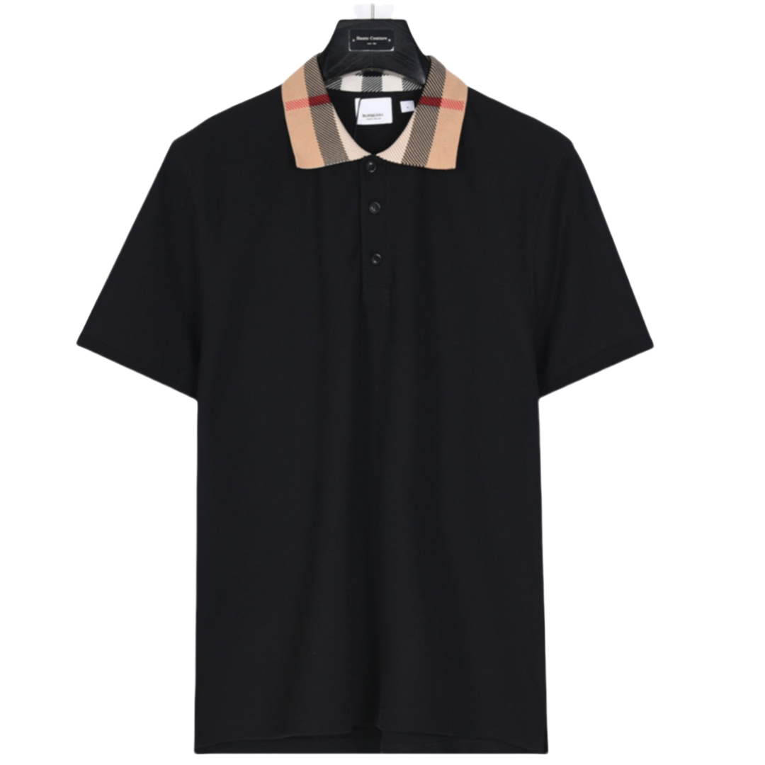 Burberry/巴宝莉 经典领口格纹短袖polo衫黑色 白色
