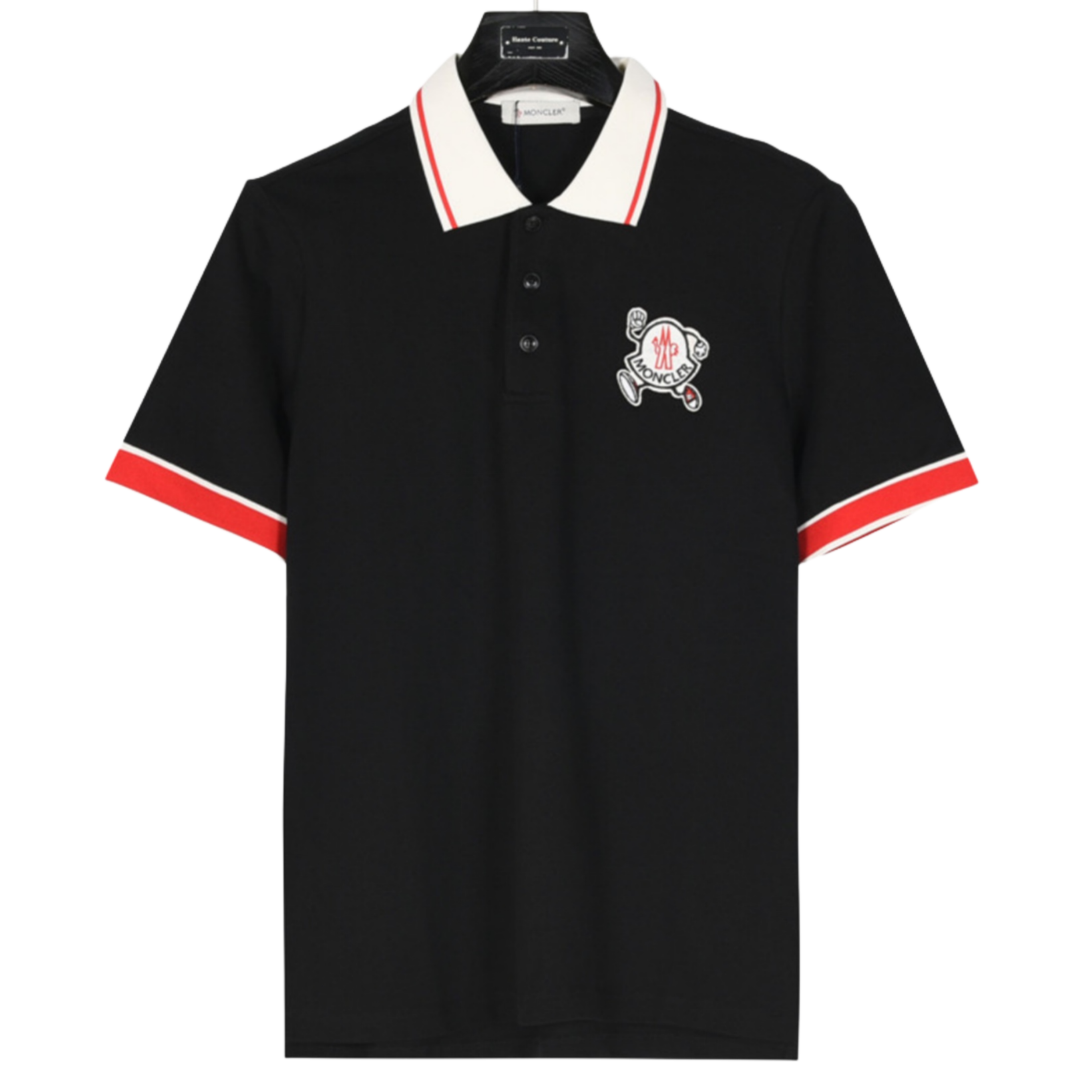 MONCLER/蒙口 奔跑小人刺绣徽章短袖Polo衫黑色 白色