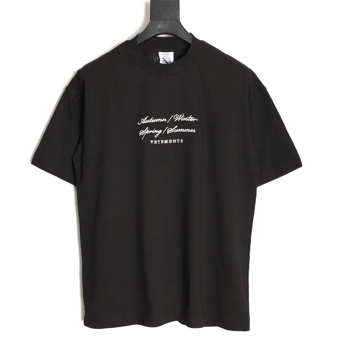 vetements 维特萌 草写标语logo字母刺绣短袖T恤
