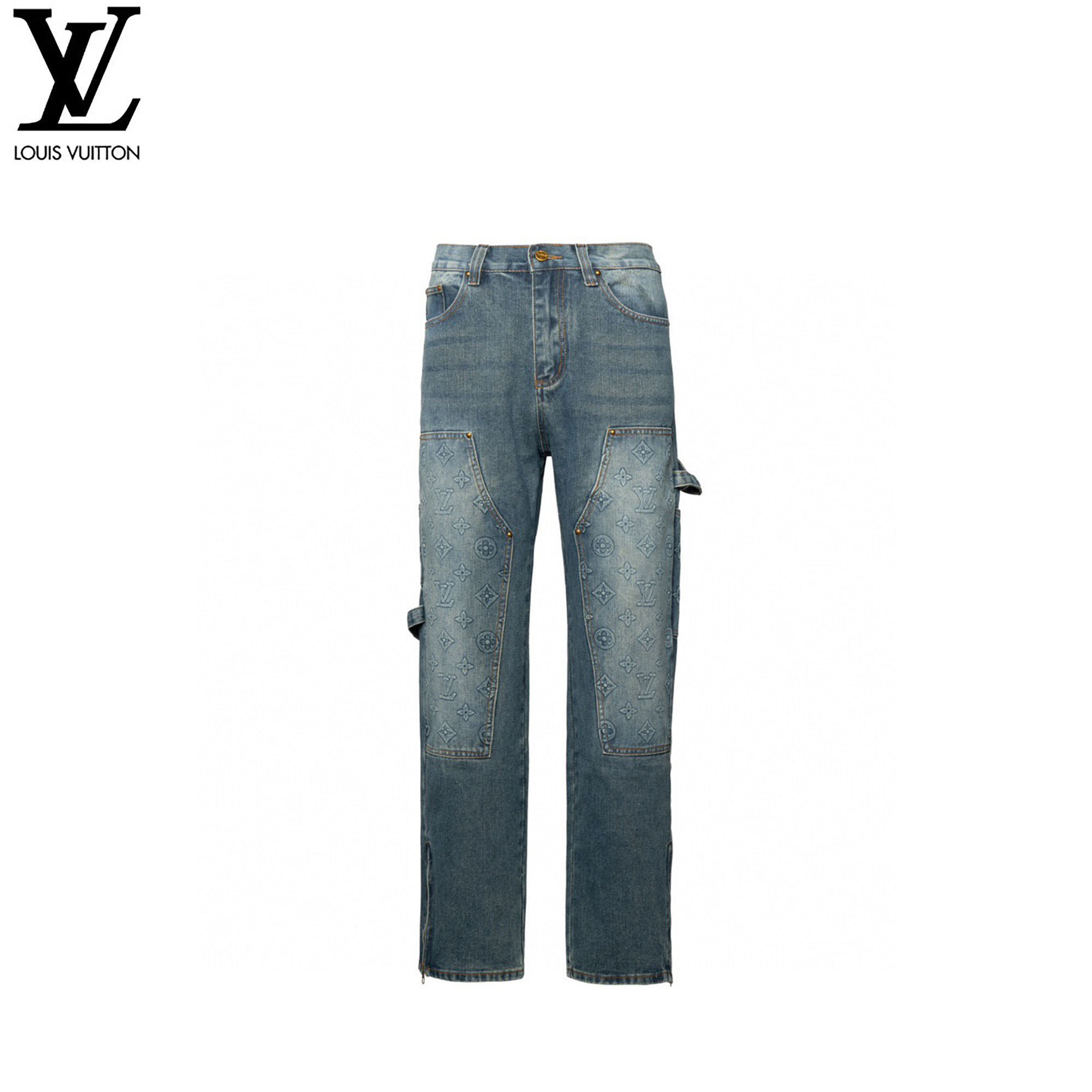 Louis Vuitton/路易威登 浮雕压纹老花工装牛仔裤蓝色