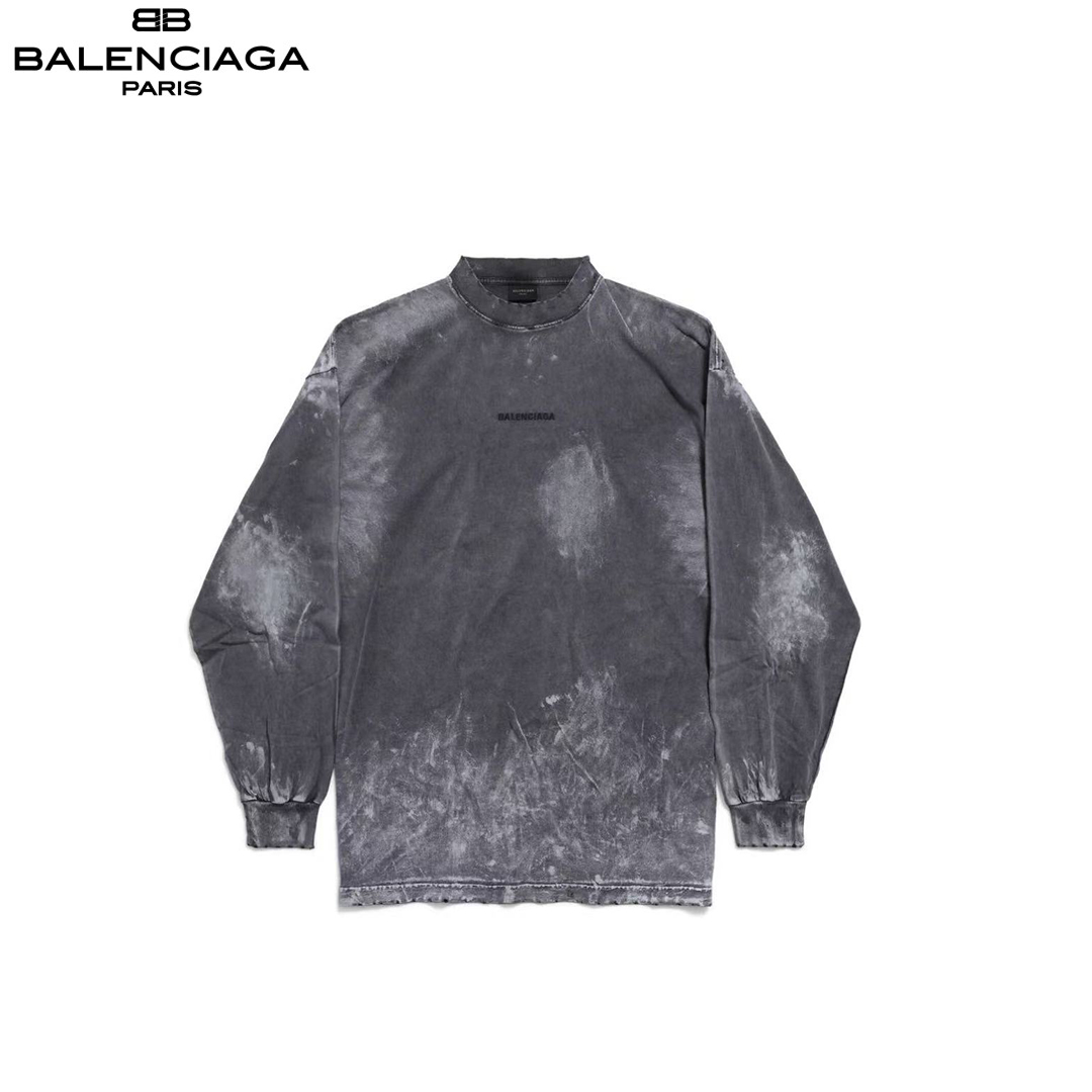 Balenciaga/巴黎世家 25ss油漆喷墨刺绣字母圆领卫衣 黑灰
