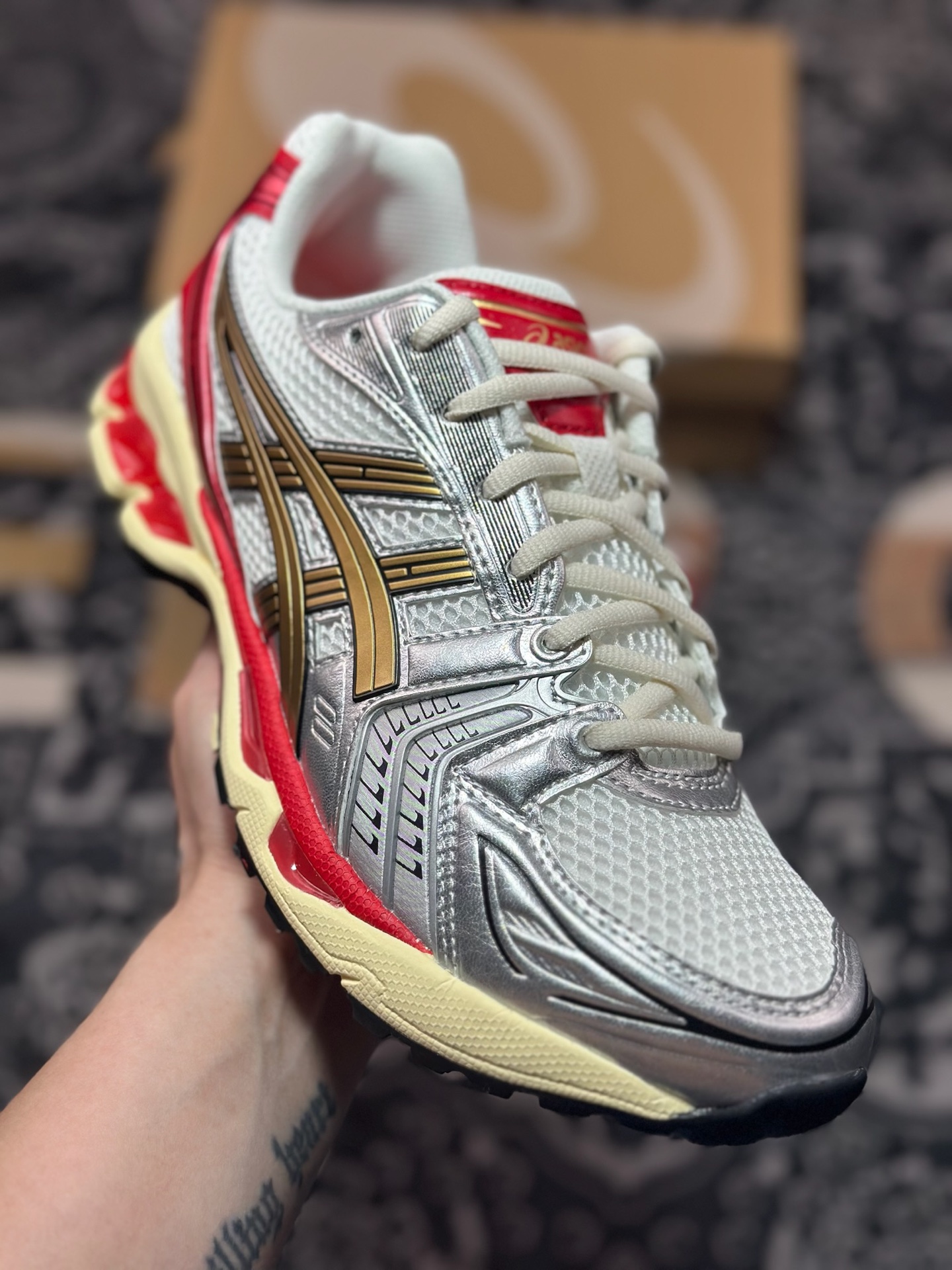 优选 原装级别 纯原 Asics 亚瑟士 GEL-Kayano 14 低帮运动休闲跑步鞋 银金红 1203A692-100