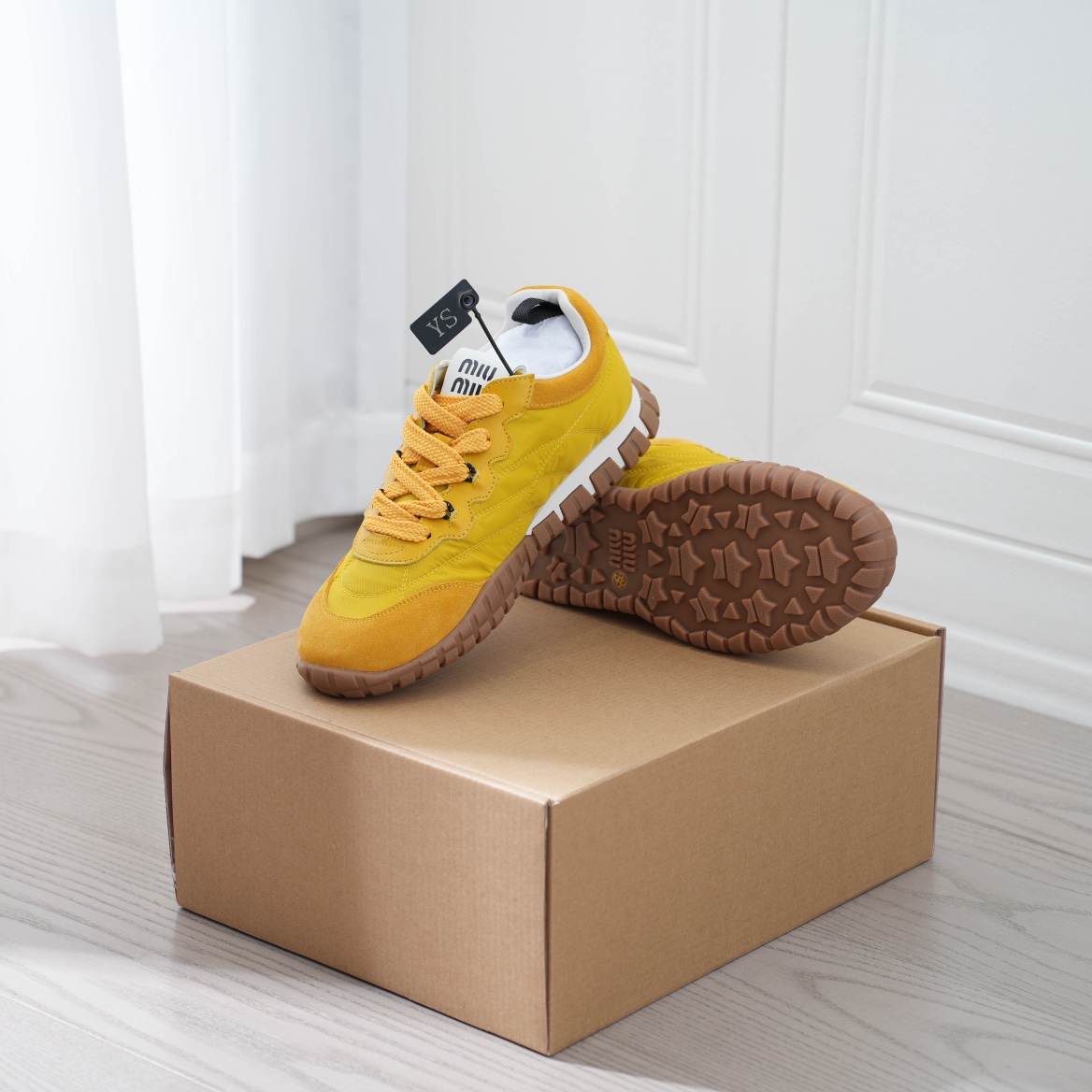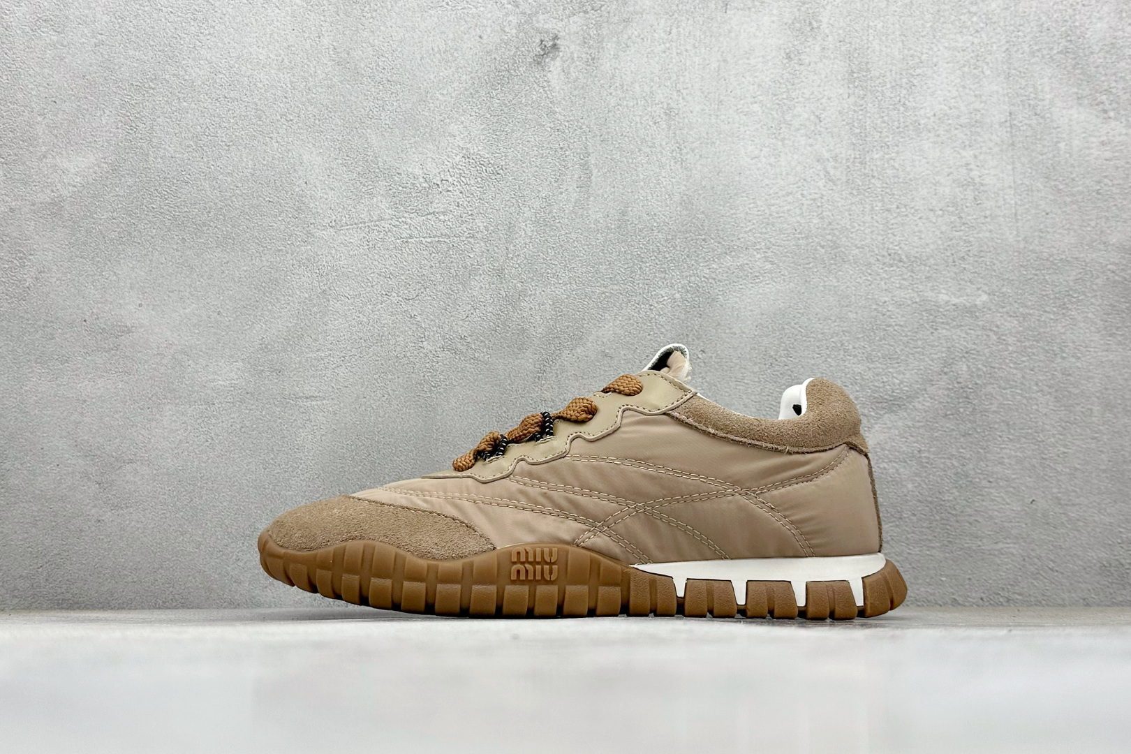 320 MIU MIU缪缪 Tyre 尼龙绒面革 圆头系带 轮胎鞋 低帮 生活休闲鞋 DY3072-3F4A-FOCU310-02-F8010