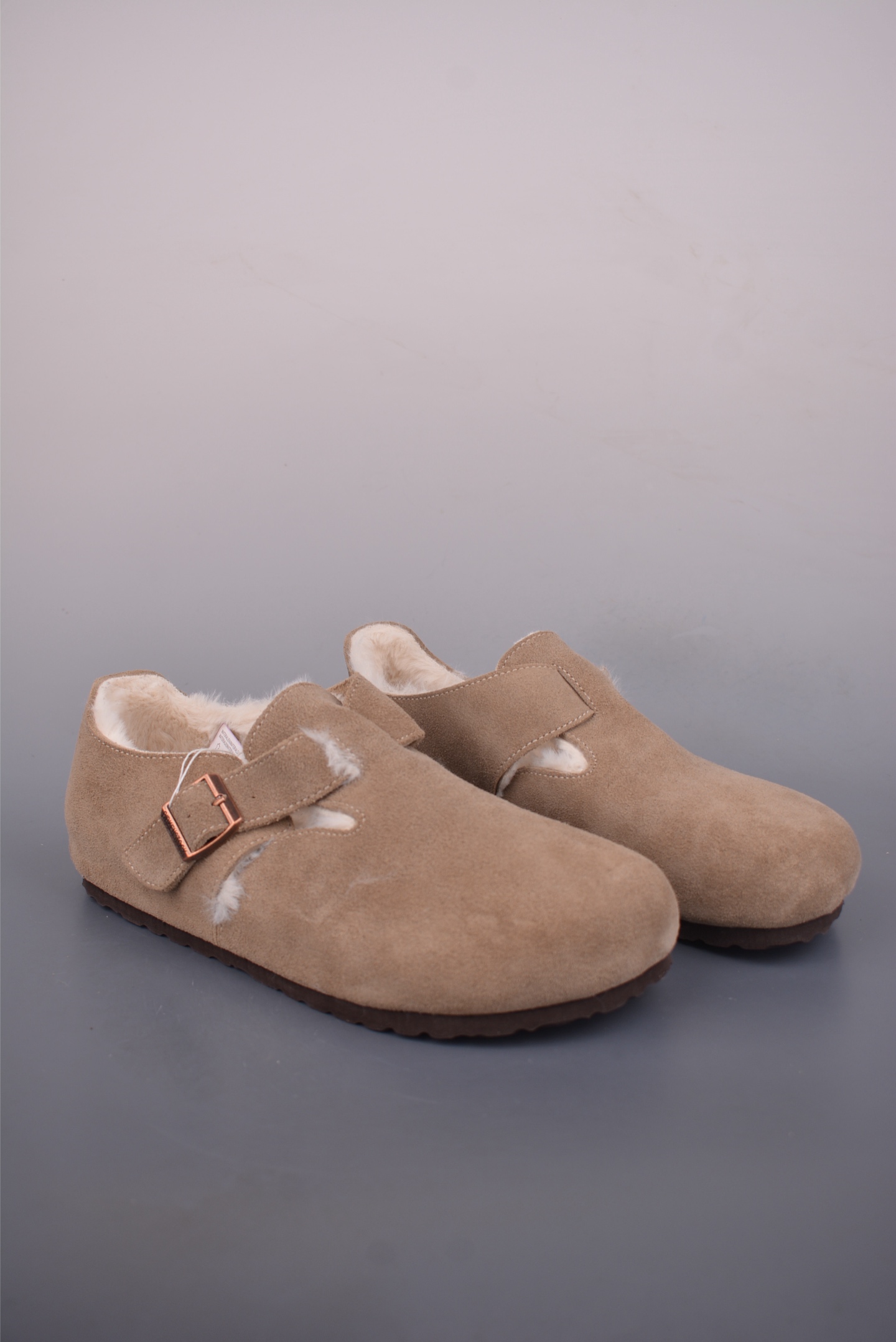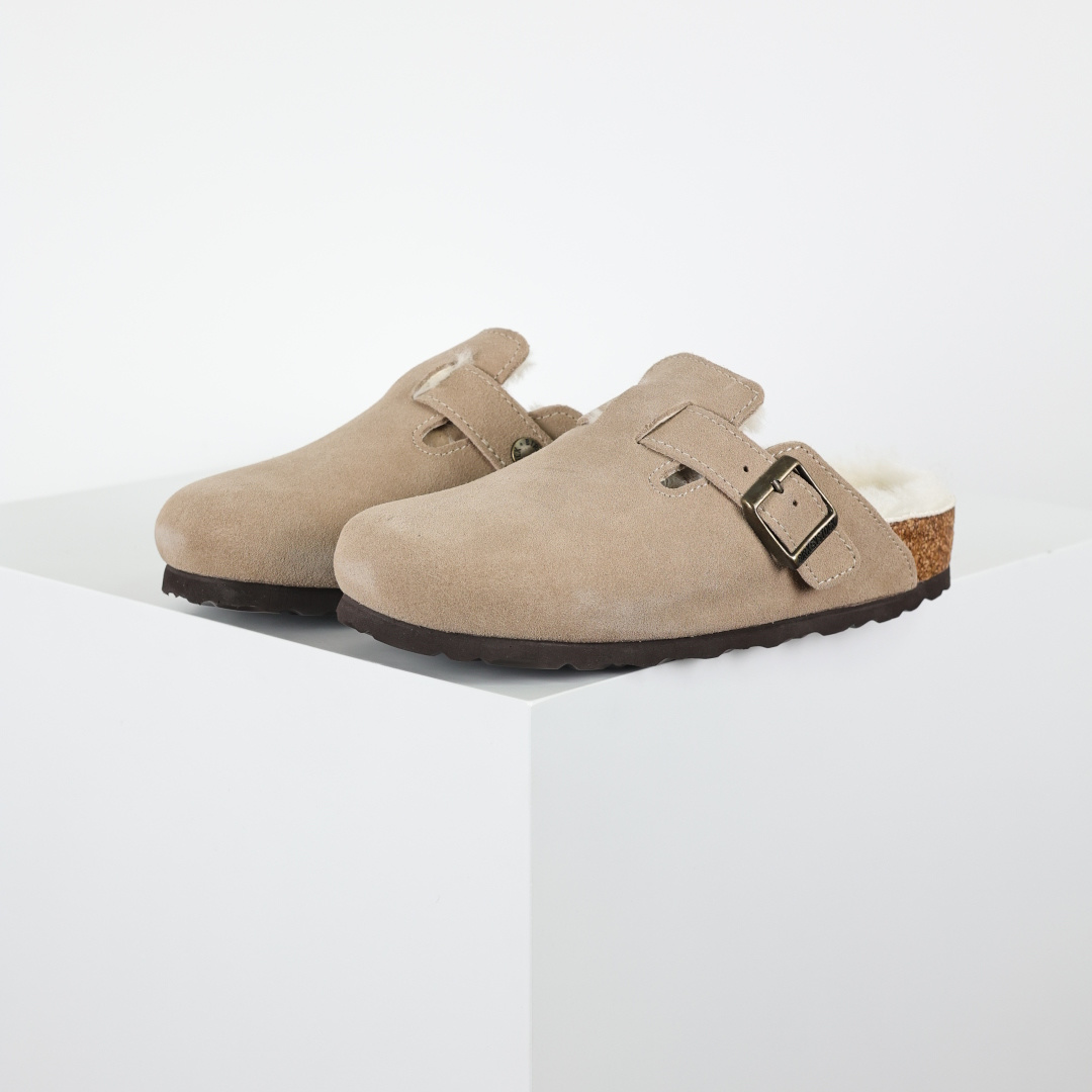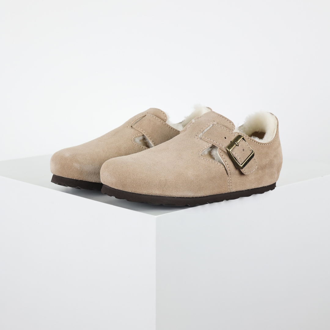 280 勃肯Birkenstock 勃肯懒人沙色加毛半拖Birkenstock London Suede Leather 伦敦系列包头平底复古软木底休闲半拖