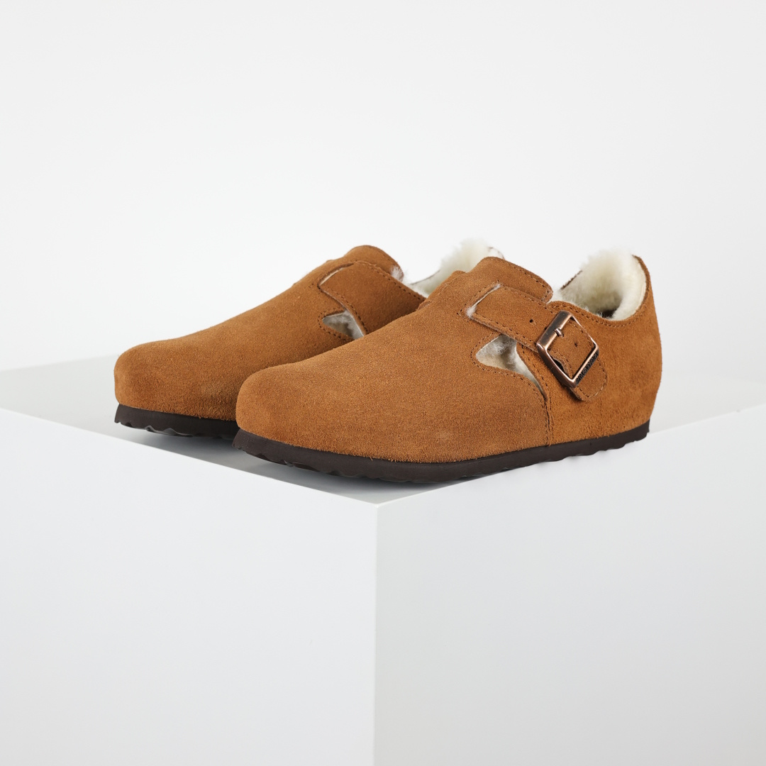 290 勃肯棕色 全包式懒人加毛单鞋 博肯Birkenstock Birkenstock London Suede Leather 伦敦系列包头平底复古软木底休闲单鞋