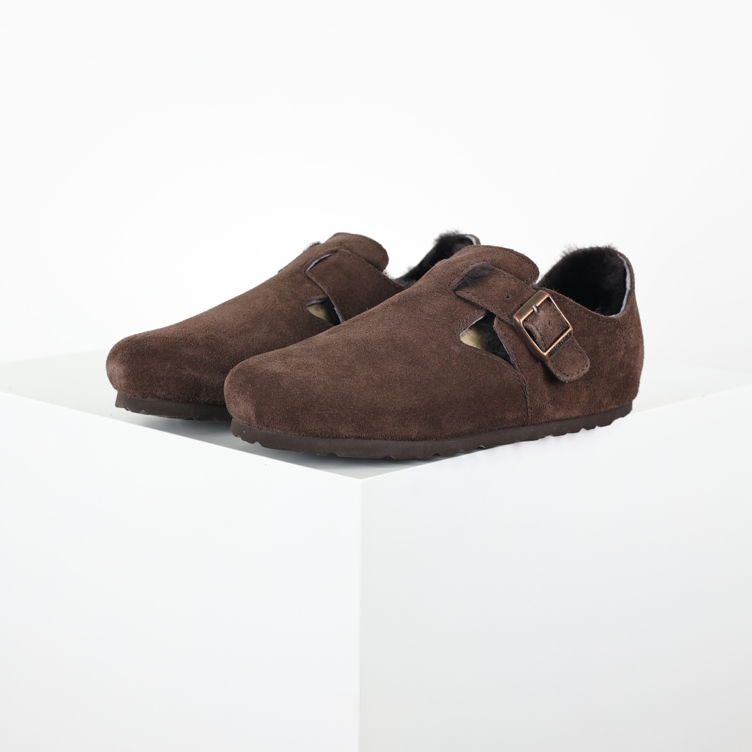 290 勃肯栗色 全包式懒人加毛单鞋 博肯Birkenstock Birkenstock London Suede Leather 伦敦系列包头平底复古软木底休闲单鞋