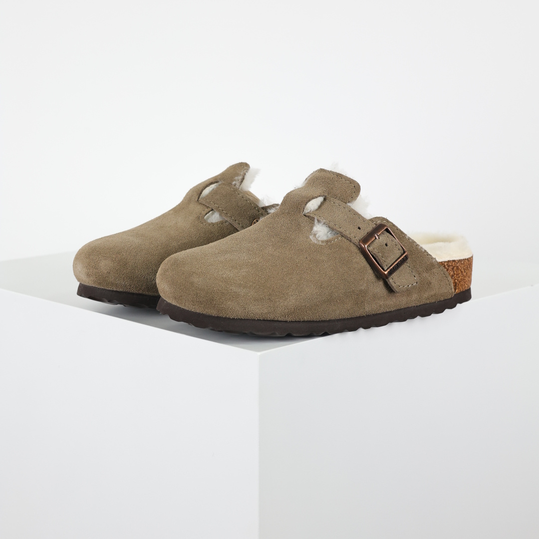 280 勃肯Birkenstock 勃肯懒人咖色加毛半拖Birkenstock London Suede Leather 伦敦系列包头平底复古软木底休闲半拖