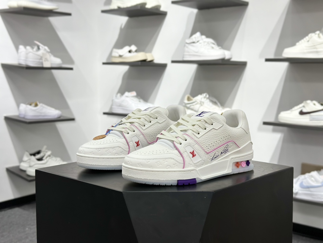 520 广东纯原版本LV Louis Vuitton Trainer 限定联名 低帮休闲板鞋 白粉紫