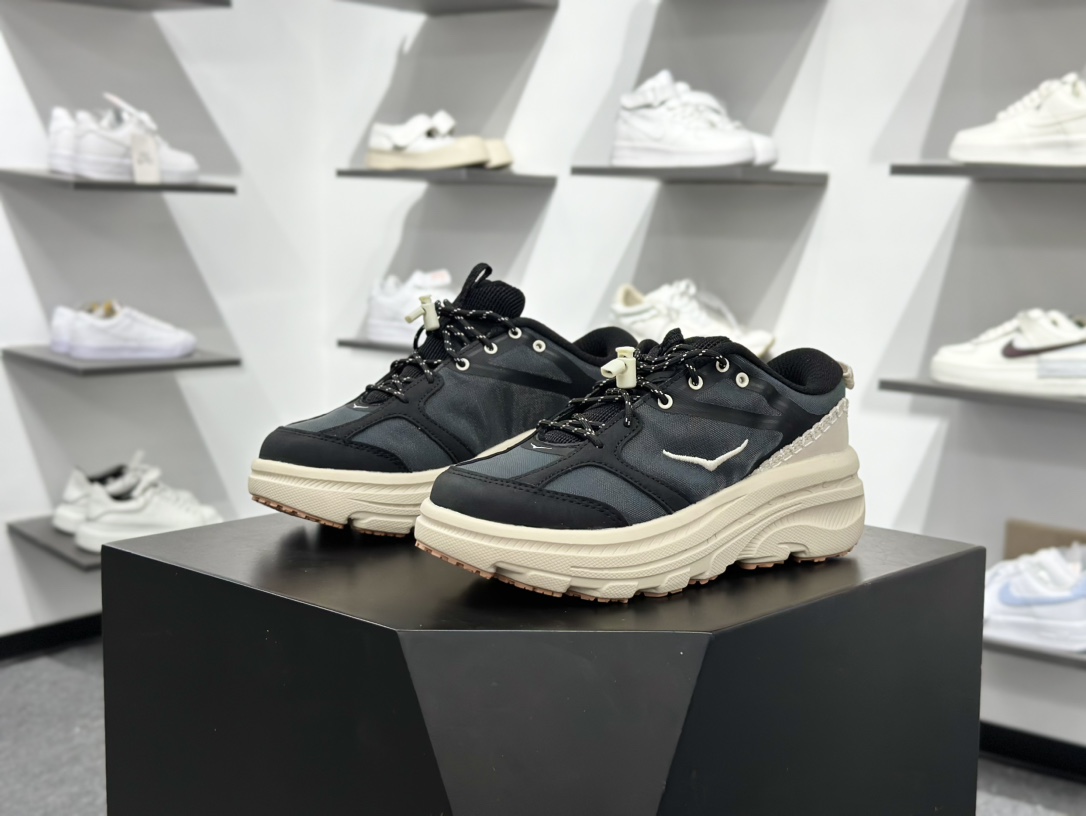200 HOKA ONE ONE Bondi 9 Low 邦迪9代系列低帮厚底轻量休闲运动慢跑鞋“网织黑白”1162011/GCTC