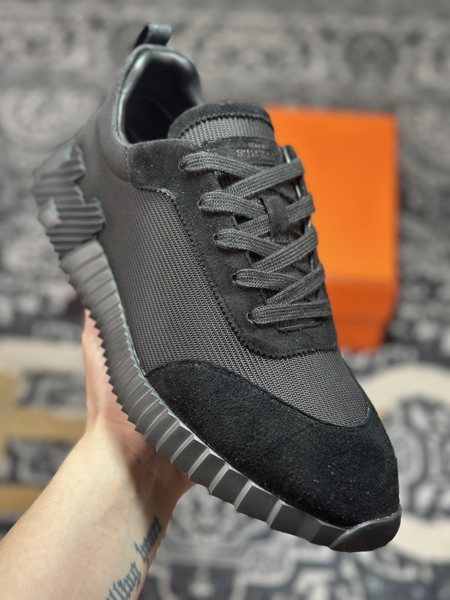 C400 爱马仕/Hermès Bouncing Low Sneaker 跳跃系列低帮轻便透气百搭休闲运动鞋“网布全黑”H231764ZH9
