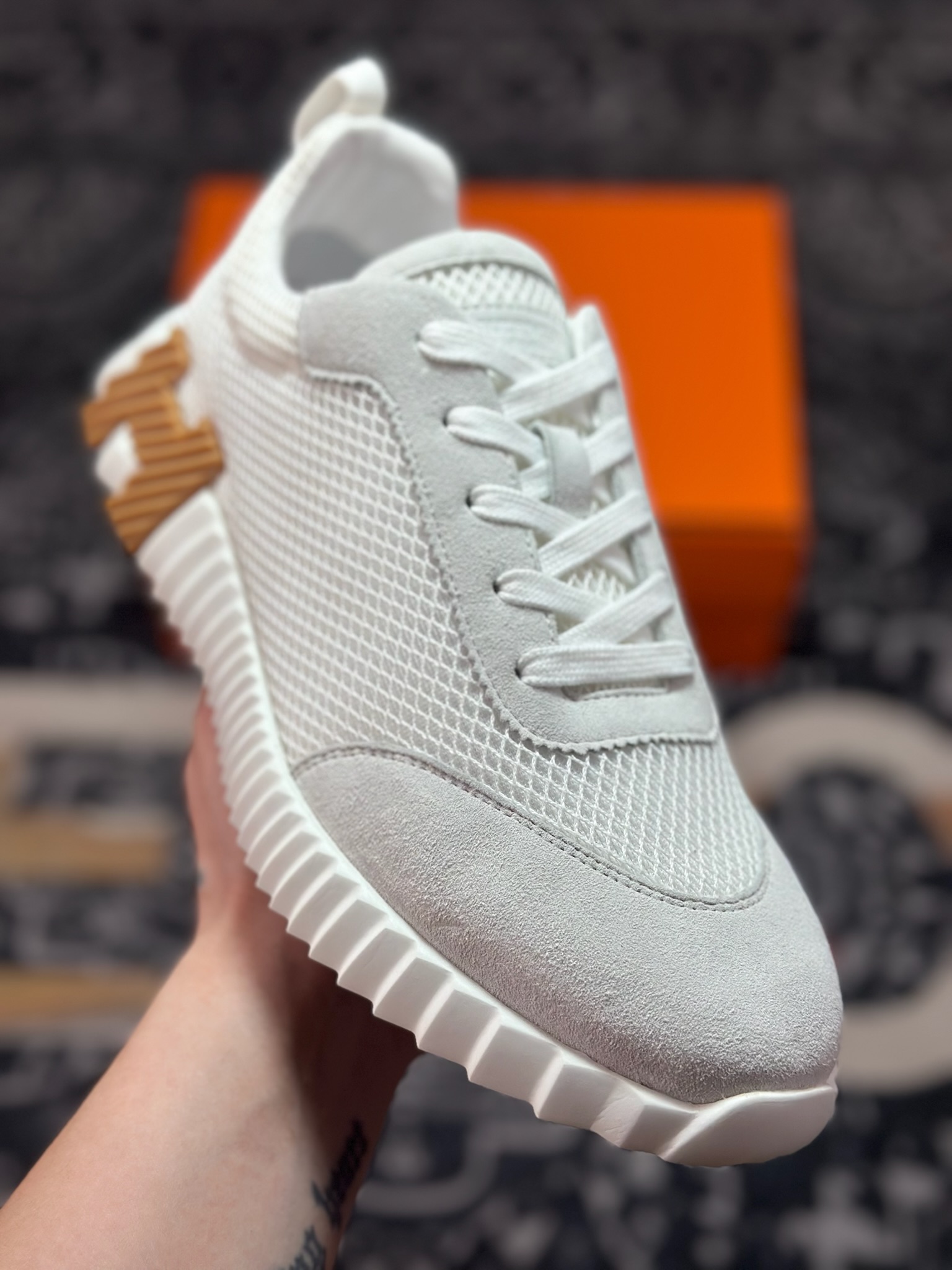 C440 爱马仕/Hermès Bouncing Low Sneaker 跳跃系列低帮轻便透气百搭休闲运动鞋“网布全白”H231764ZH9