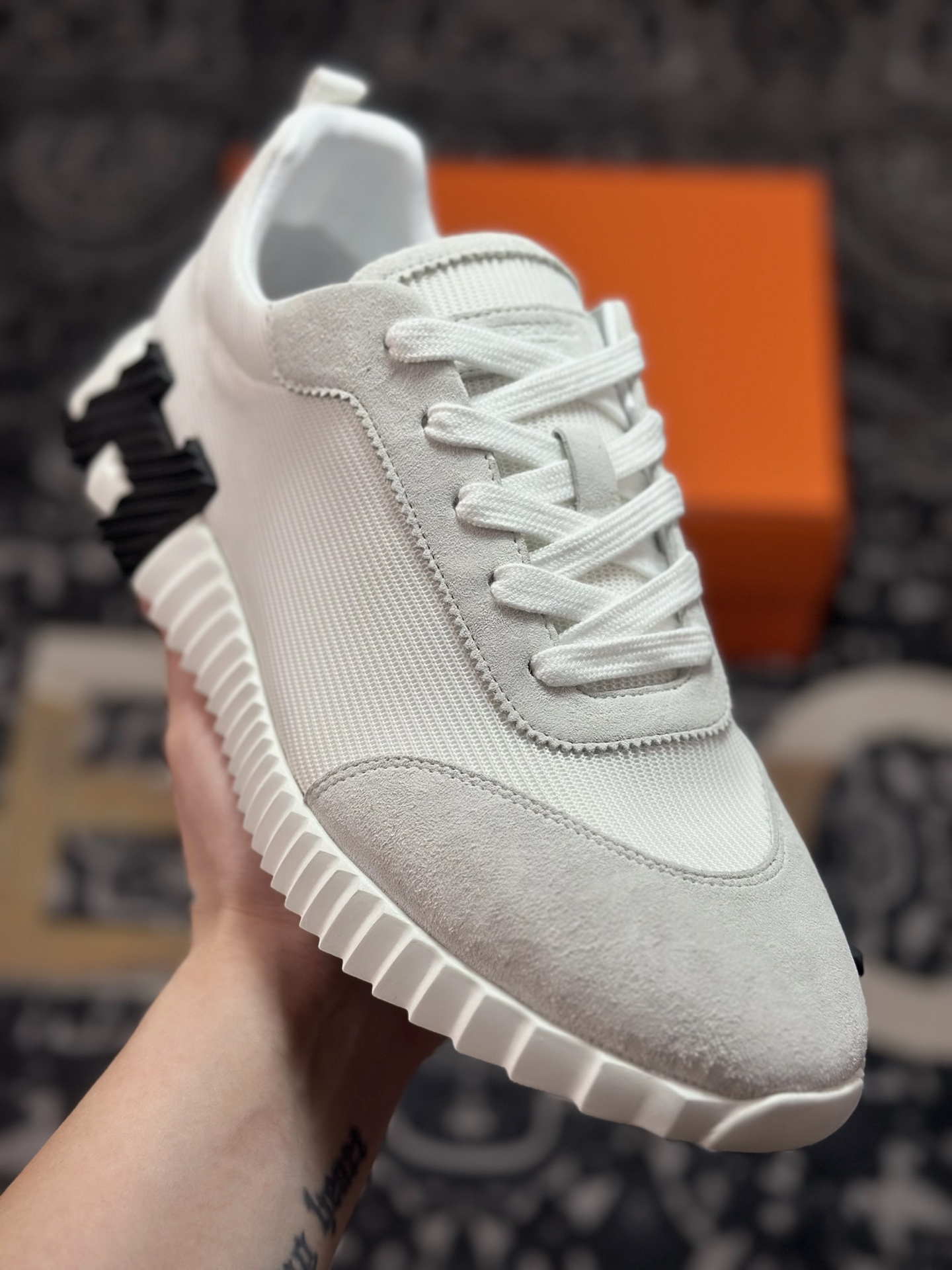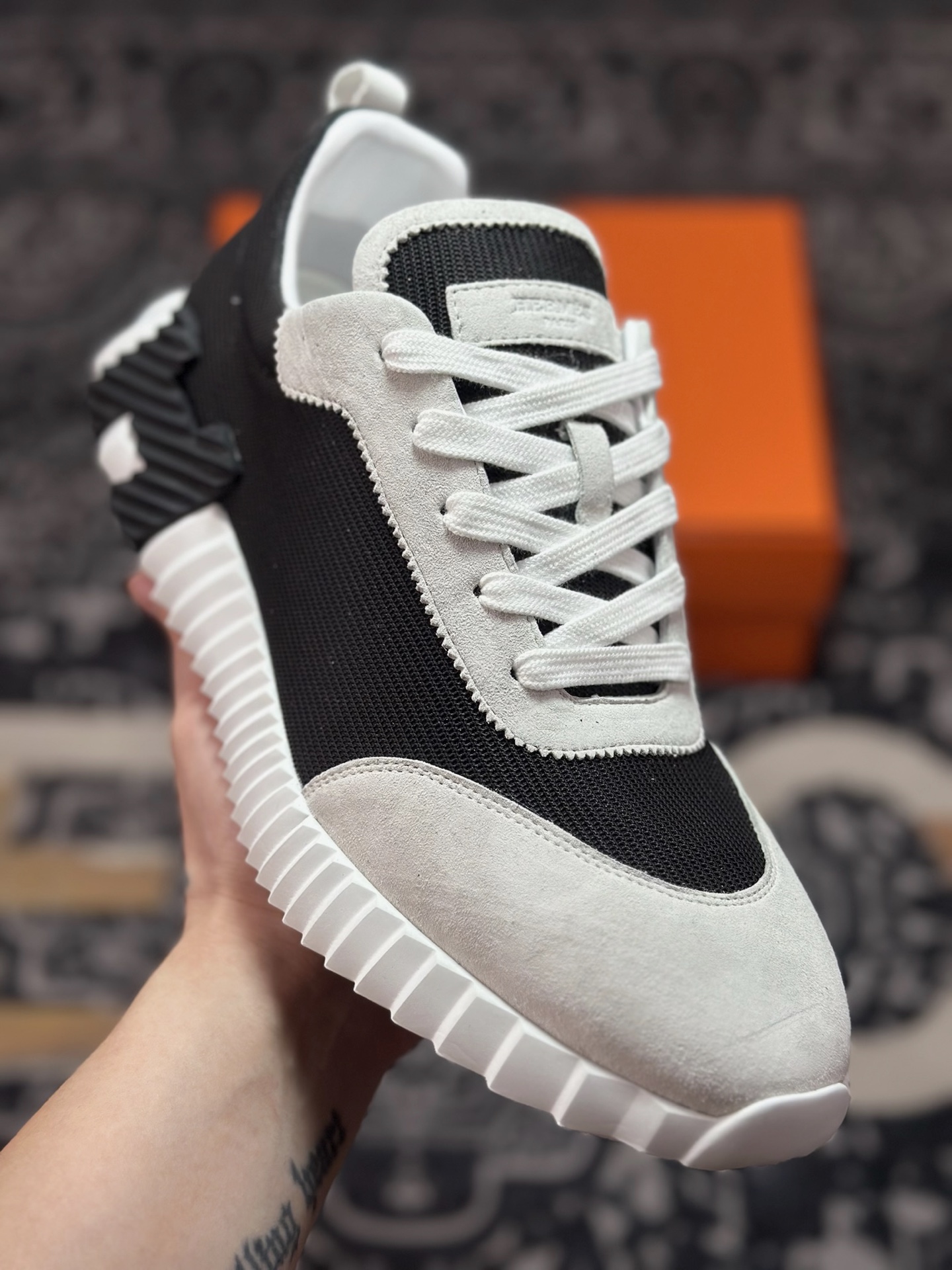 C440 爱马仕/Hermès Bouncing Low Sneaker 跳跃系列低帮轻便透气百搭休闲运动鞋“网布白黑”H231764ZH9