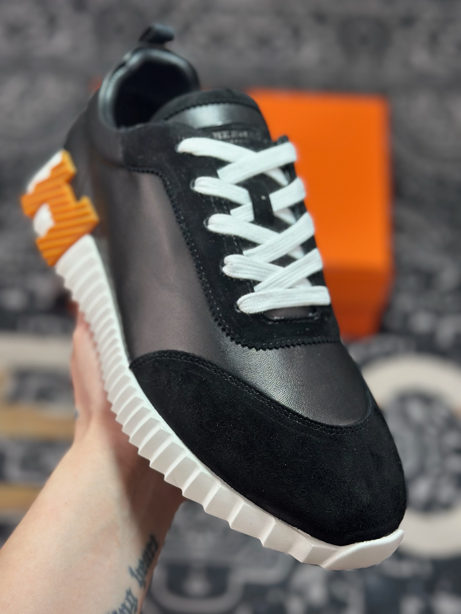 C640 爱马仕/Hermès Bouncing Low Sneaker 跳跃系列低帮轻便透气百搭休闲运动鞋“皮面黑白棕”H231764ZH9