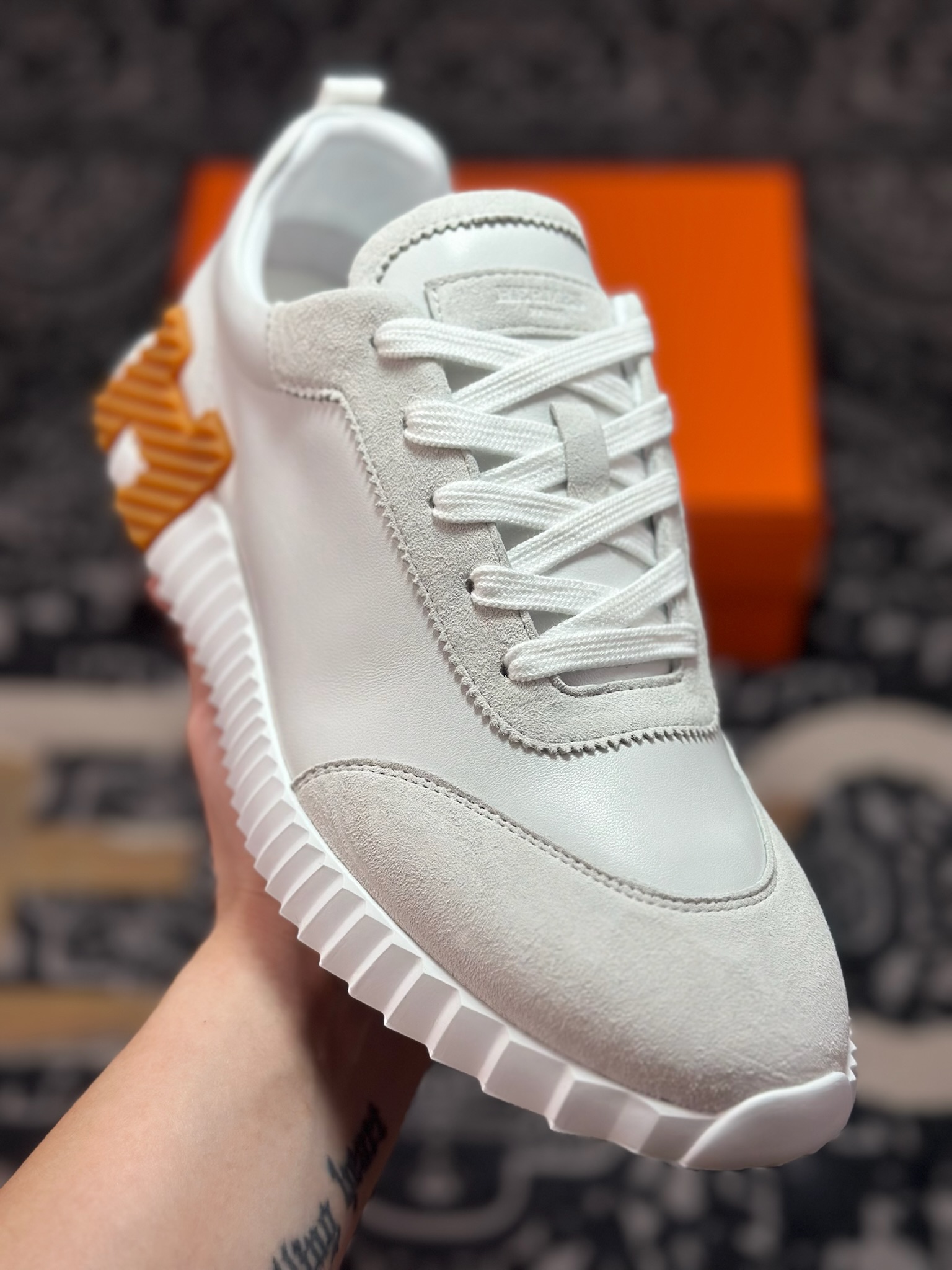 C640 爱马仕/Hermès Bouncing Low Sneaker 跳跃系列低帮轻便透气百搭休闲运动鞋“皮面白黑棕”H231764ZH9