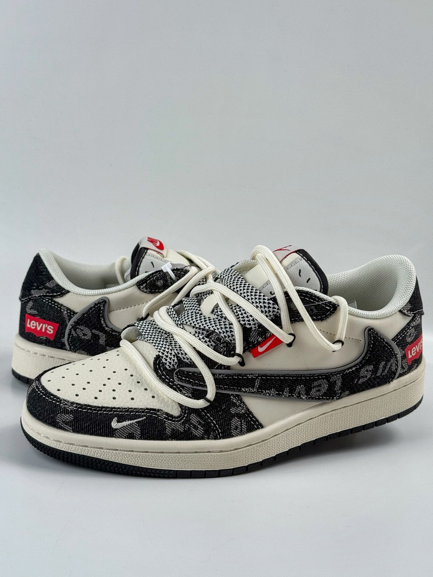 300 Travis Scott x Nike Air Jordan 1 Low x Louis Vuitton Air Jordan 1 Low 反转黑白牛仔小勾满天星倒钩 HT5088-600