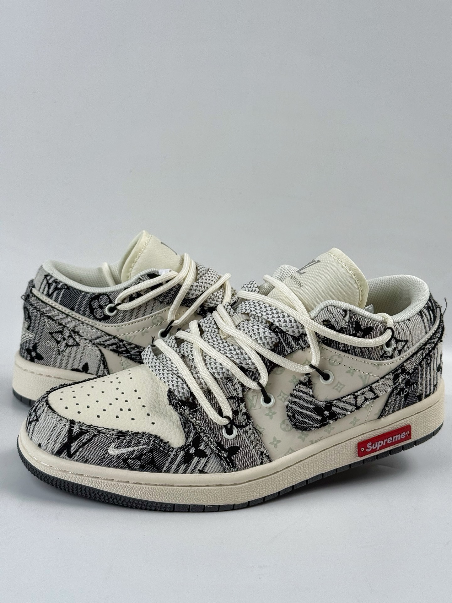 250 定制版Nike Air Force 1 ’07 Low 路易威登LV联名— 白黑牛仔印花 高端定制 低帮休闲板鞋 DK0798-001
