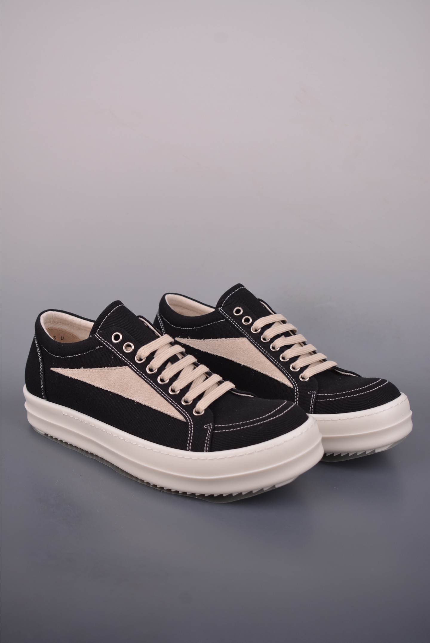 500 莞顶渠道瑞克 欧文斯Rick owens 主线 经典西瓜头 RO低帮厚底黑白布面 DO02E7803