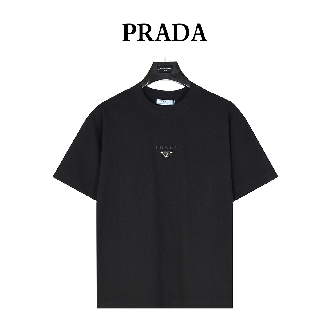 Prada/普拉达 25ss 胸前镶嵌金属三角标及logo压花短袖T恤 黑色 白色
