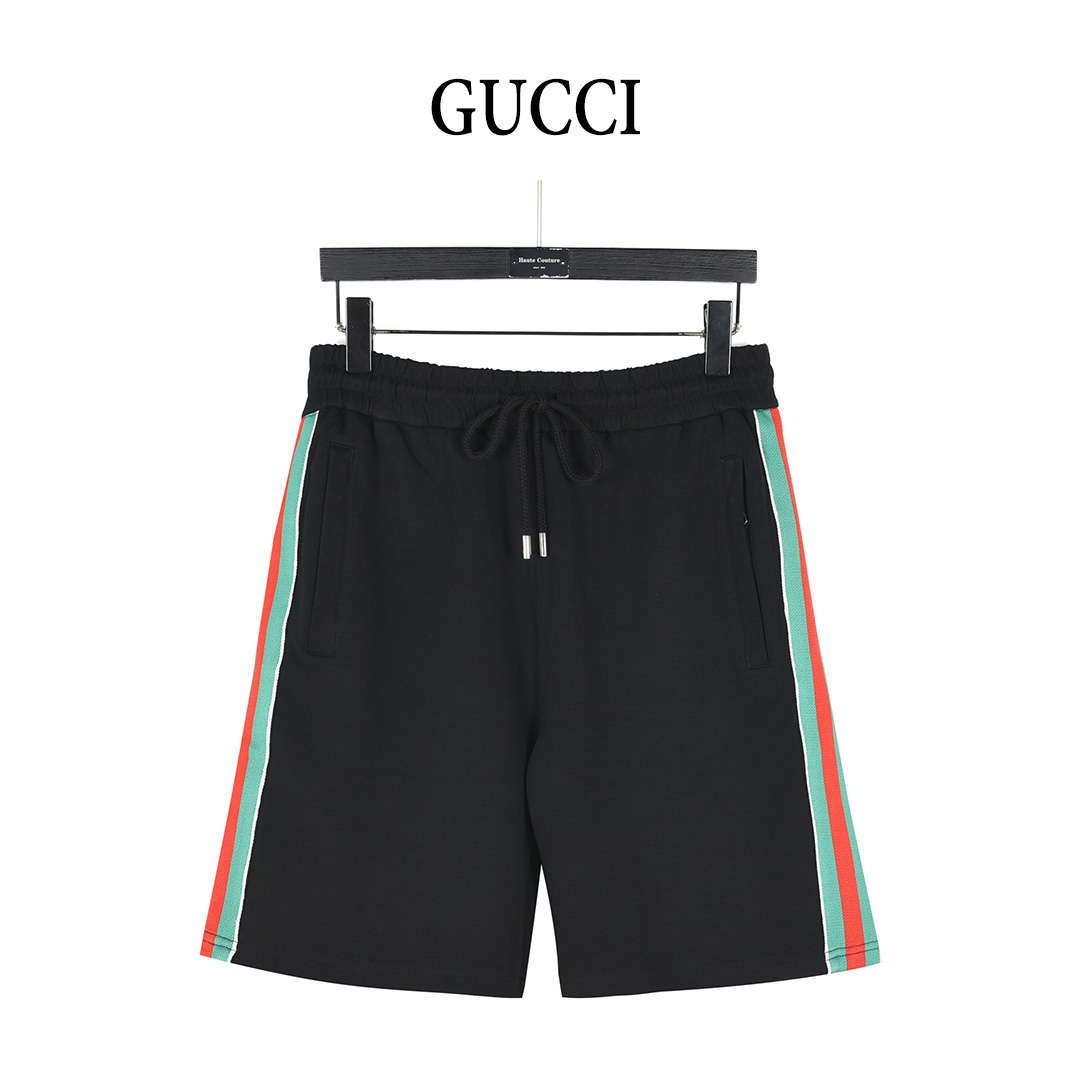 Gucci/古驰 红绿织带拼接双G刺绣运动短裤 黑色