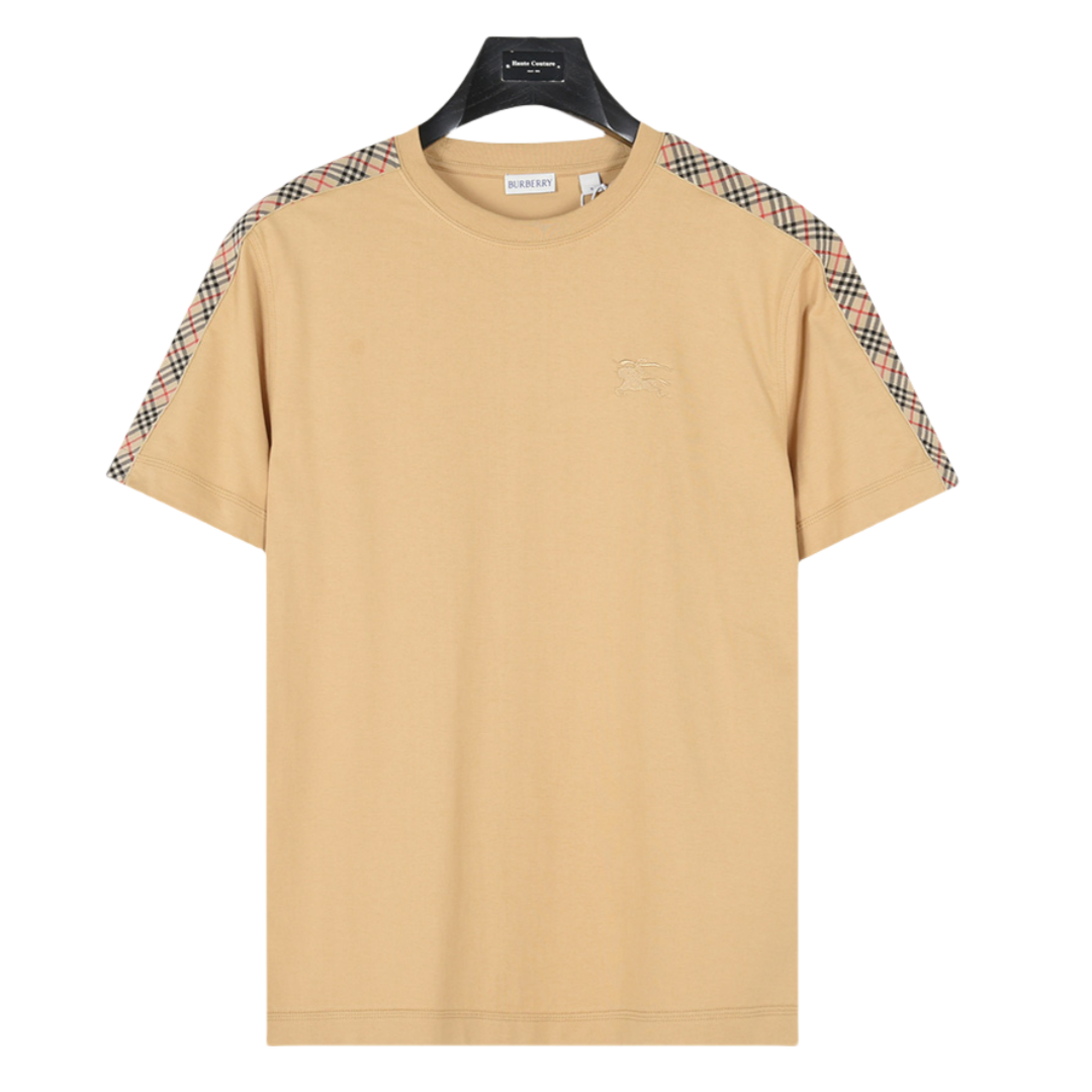 Burberry/巴宝莉 25ss 肩部格纹织带拼接短袖T恤 黑色 白色 卡其