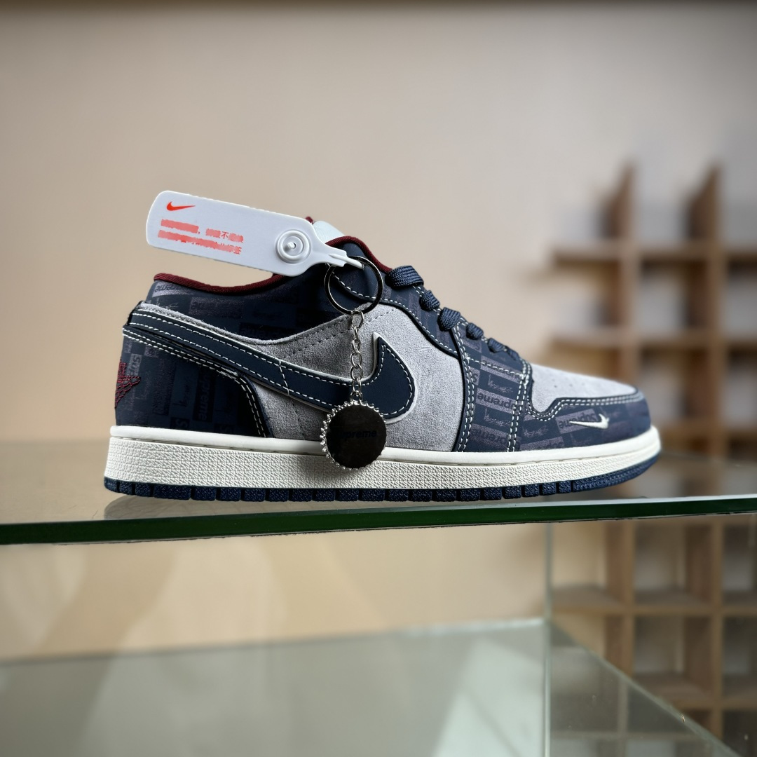 280 Nike Jordan Air Jordan 1“Supreme联名——暗灰蓝” 高端定制 低帮 复古 减震 防滑 耐磨 篮球鞋 QG1988-015
