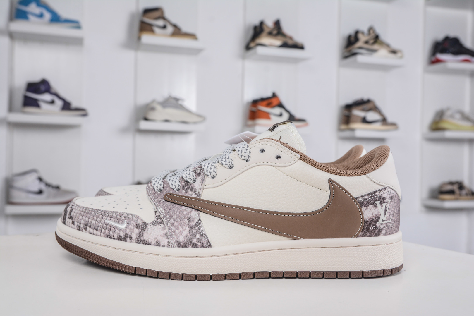 270 TS x Air Jordan x Louis Vuitton AJ1 Low 倒钩低帮LV联名-白棕蟒纹 XS7089-618