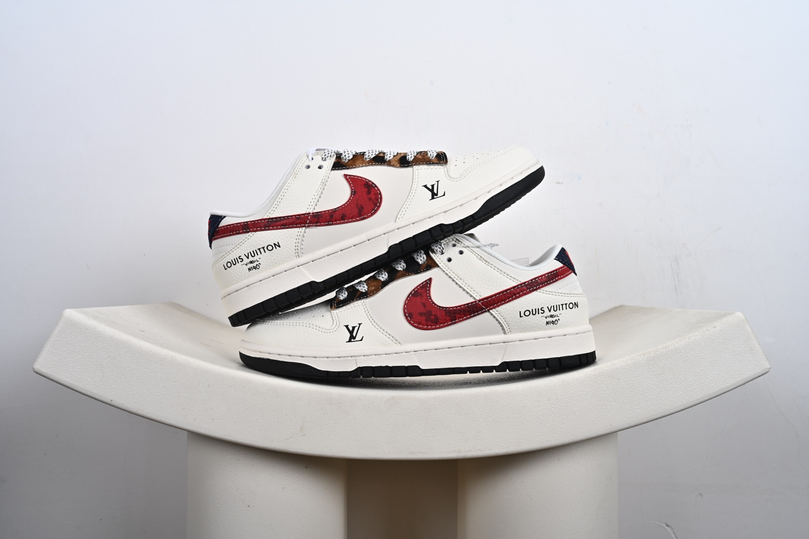 240 Nike Air Force 1 ’07 Low “LV联名——印花米黑红”空军一号 高端定制 低帮 运动鞋 MZ9588-812