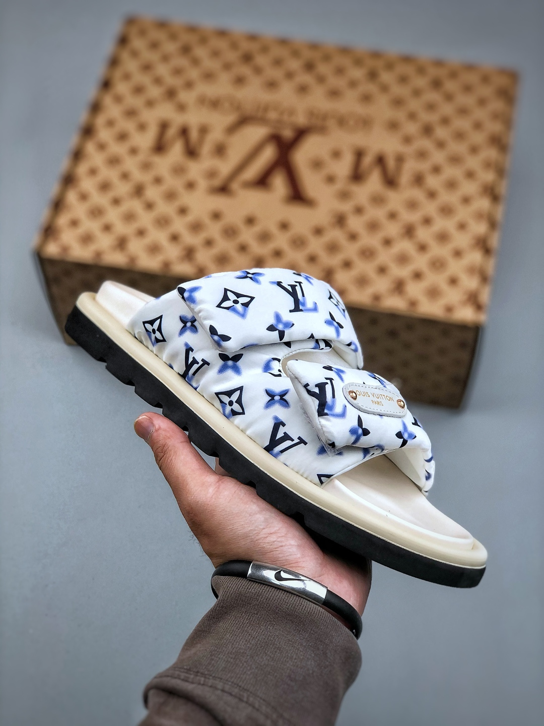 260 LOUIS VUITTON |路易威登2025ss最新春夏款 村上隆/Takashi Murakami x LOUIS Pool Pillow Comfort 皮革 圆头套脚一字拖鞋 男女款 白色