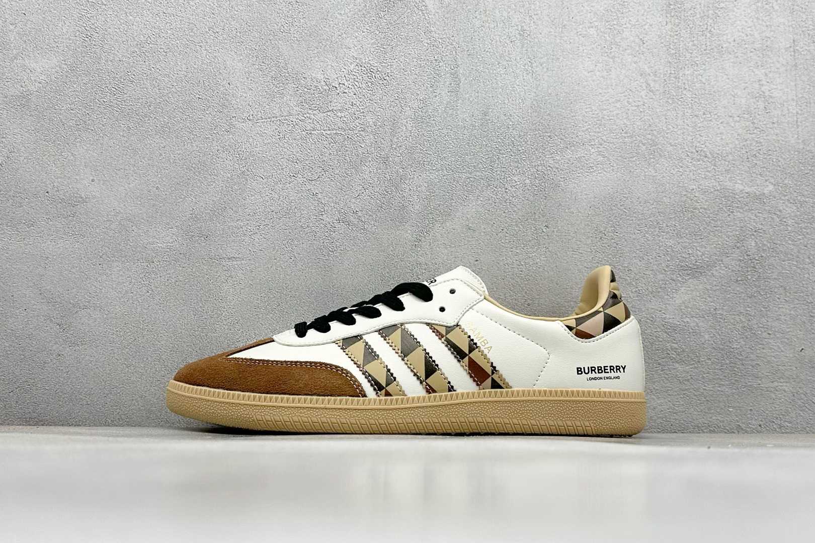 220 adidas originals Samba OG x BURBERRY 棕白 桑巴舞系列复古经典轻便板鞋 GJ75806