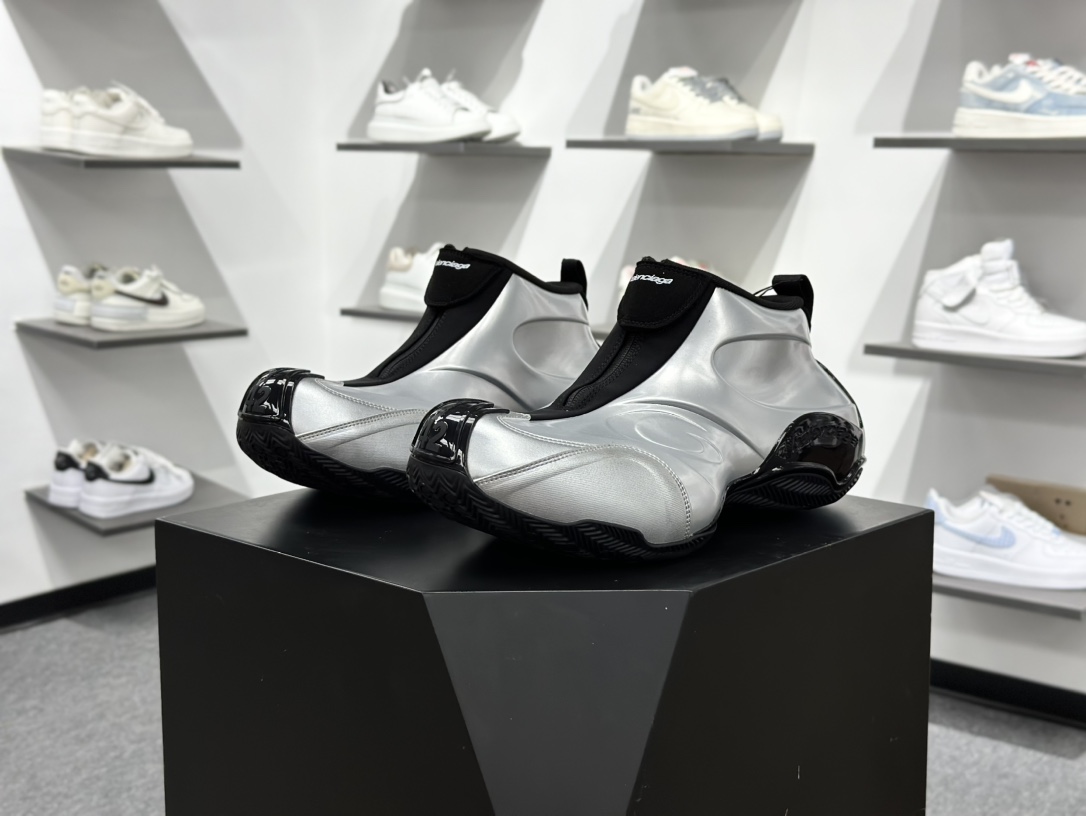 560 Balenciaga巴黎世家 basketball 篮球鞋 圆头拉链 中帮 生活休闲鞋 男款 银色 824909 WBKBM