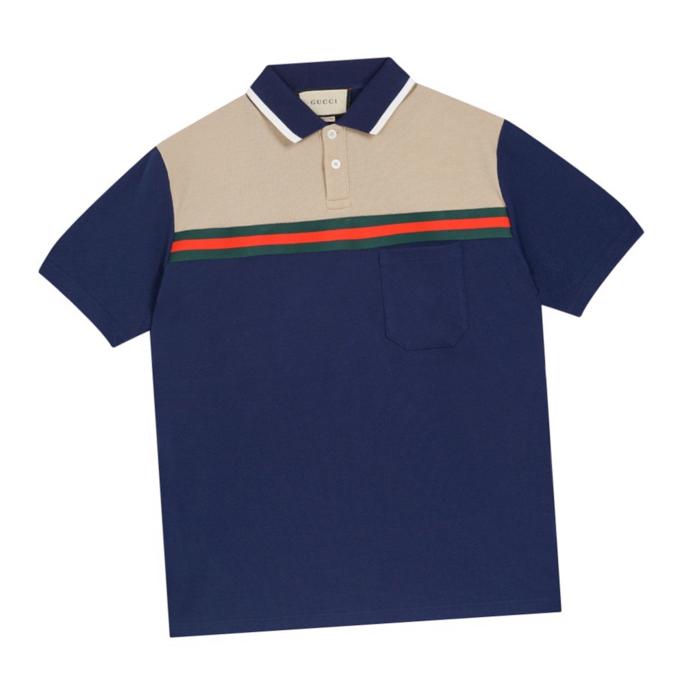 古驰/Gucci 夏季新款 红绿织带撞色拼接翻领短袖polo衫 藏蓝色