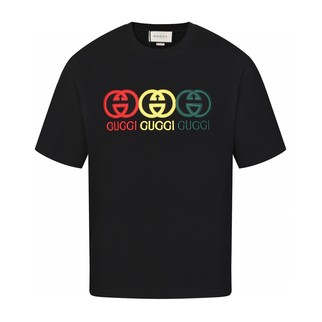 古驰/Gucci 夏季新款 红黄绿三色刺绣字母圆领短袖T恤 黑色/白色