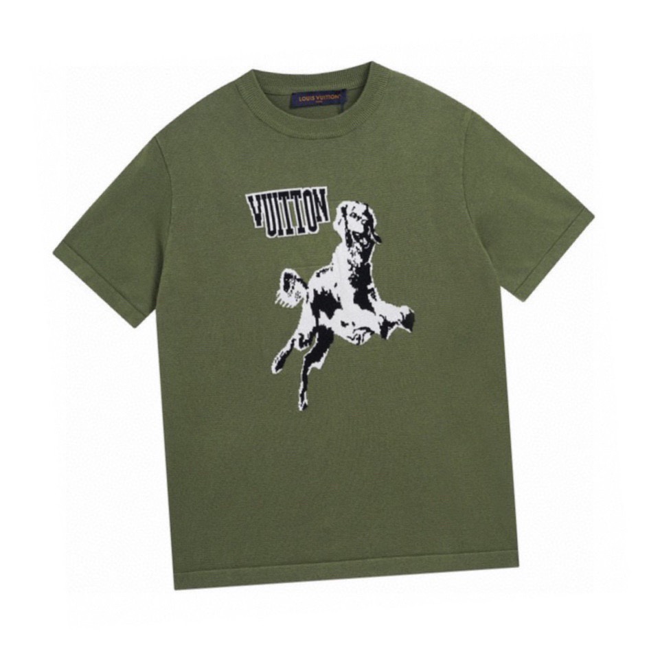 路易威登/Louis Vuitton 夏季新品 猎犬针织圆领毛衣短袖 墨绿