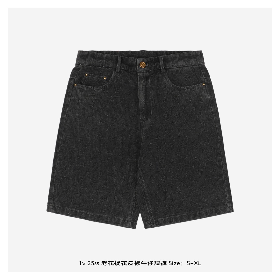 1v 25ss 老花提花皮标牛仔短裤