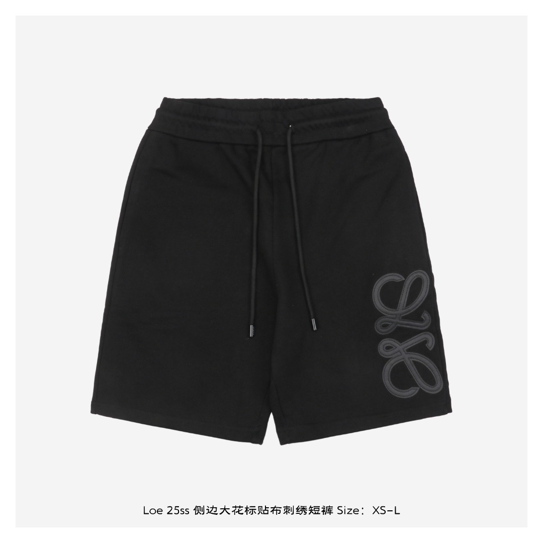 Loewe/罗意威 25ss 侧边大花标贴布刺绣短裤 膝盖处饰有激光烧花